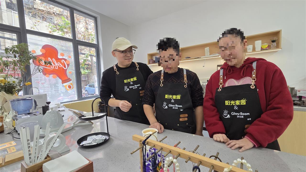 更打动钱伟胜的,是黄书记随之而来的提议:“位置就在社区‘阳光家园’楼下,你要是愿意来,能不能顺便带楼上的孩子们接触一下咖啡,学点手艺?”钱伟胜对“阳光家园”并不陌生,他知道那里有一群由志愿者胡春莉悉心照料了十几年的特殊“孩子”,但他干脆地答应了。这个决定,源于商业考量,也源于更深层的情感触动——社区免去了租金和基础装修费用,极大减轻了他的创业压力;而能与“阳光家园”结合,让这家店有了超越纯粹商业的独特意义。