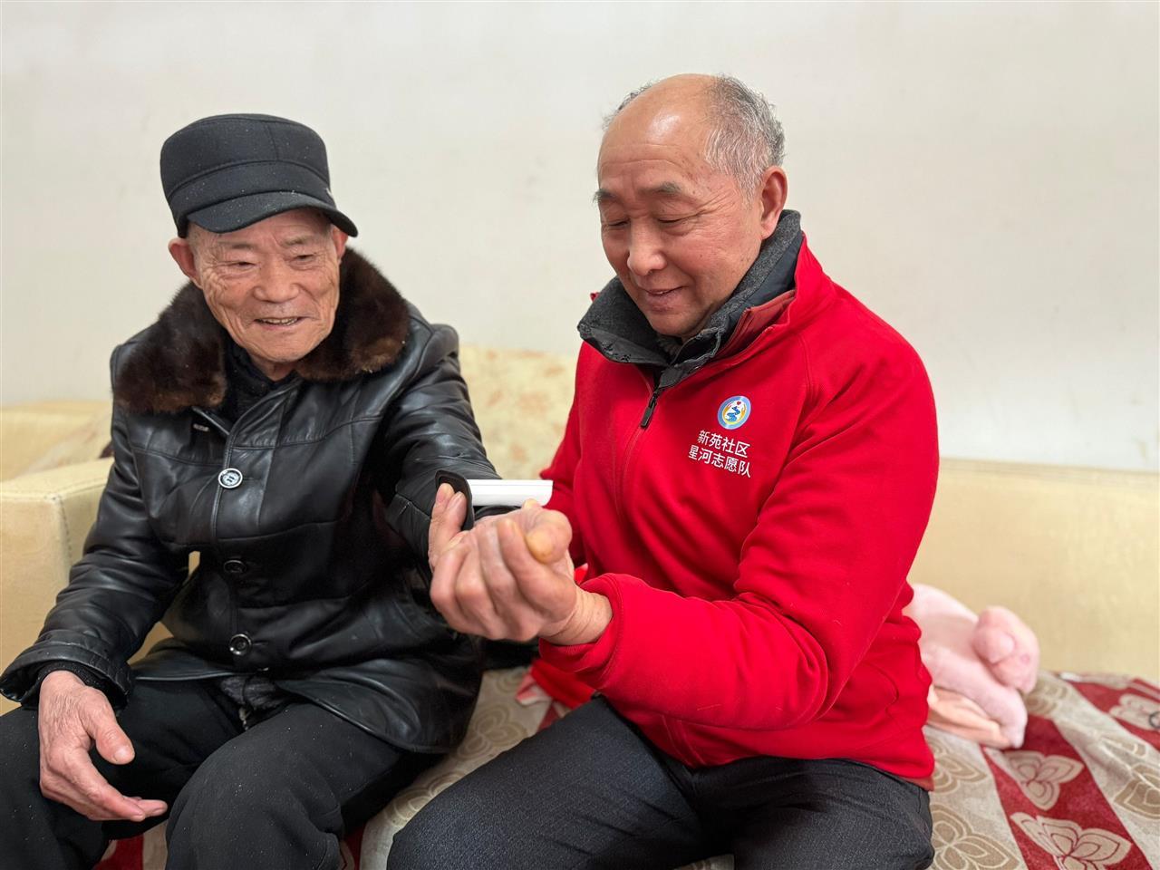 12月30日上午,武汉市东西湖区柏泉街新苑社区星河志愿者服务队的魏元清,像往常一样带上血压计,轻轻敲响了78岁居民周爹爹的家门。因年事已高、腿脚不便,周爹爹平时很少出门。魏元清的定期到访,不仅是为他测量血压,更是带来一份温暖的陪伴。“我不能出门,有他常来,心里就踏实。”周爹爹笑着说。
