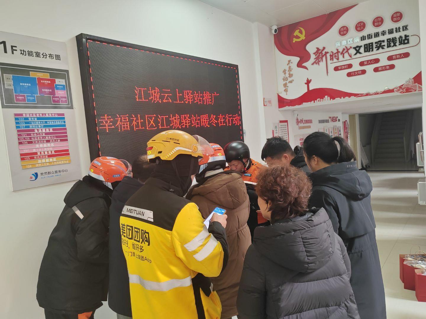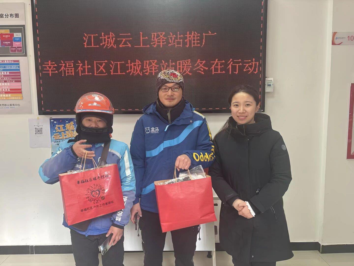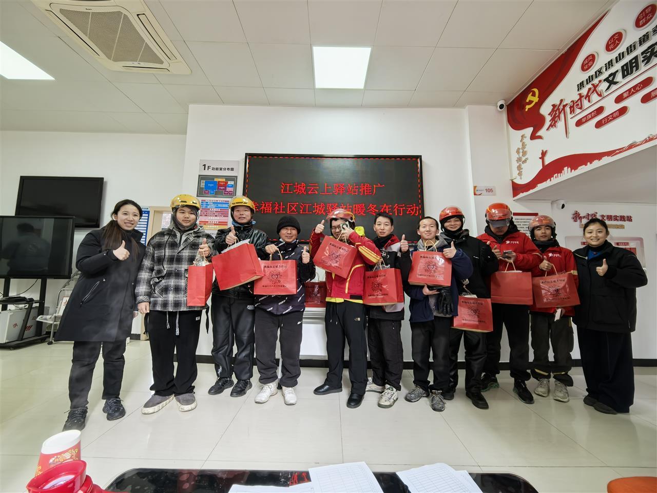 为切实关心关爱在寒冬中坚守岗位的新就业群体,12月29日,武汉市洪山区洪山街道幸福社区江城驿站面向辖区内广大外卖员、快递员、网约车司机、货车司机、网络主播等新就业群体,组织开展暖冬行动。