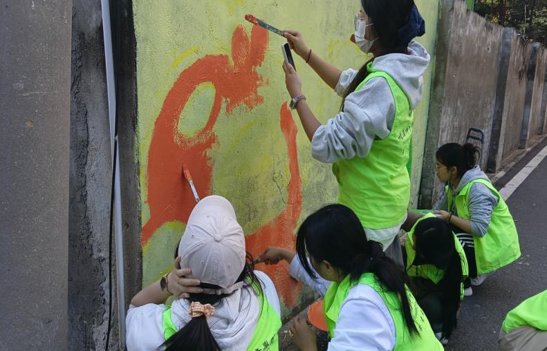 志愿者们用自己的才华装点着社区家园。一批具有艺术设计特长的同学,拿起画笔,投身社区微更新项目。昔日斑驳老旧的墙面,在他们的妙笔下变成了传递文明新风尚的彩绘艺术墙;单调沉闷的公共地面,化为了充满童趣的跳房子格或彩虹步道。他们用艺术画笔“点睛”,让社区公共空间颜值与温度双双提升,赢得了居民们的连连称赞。