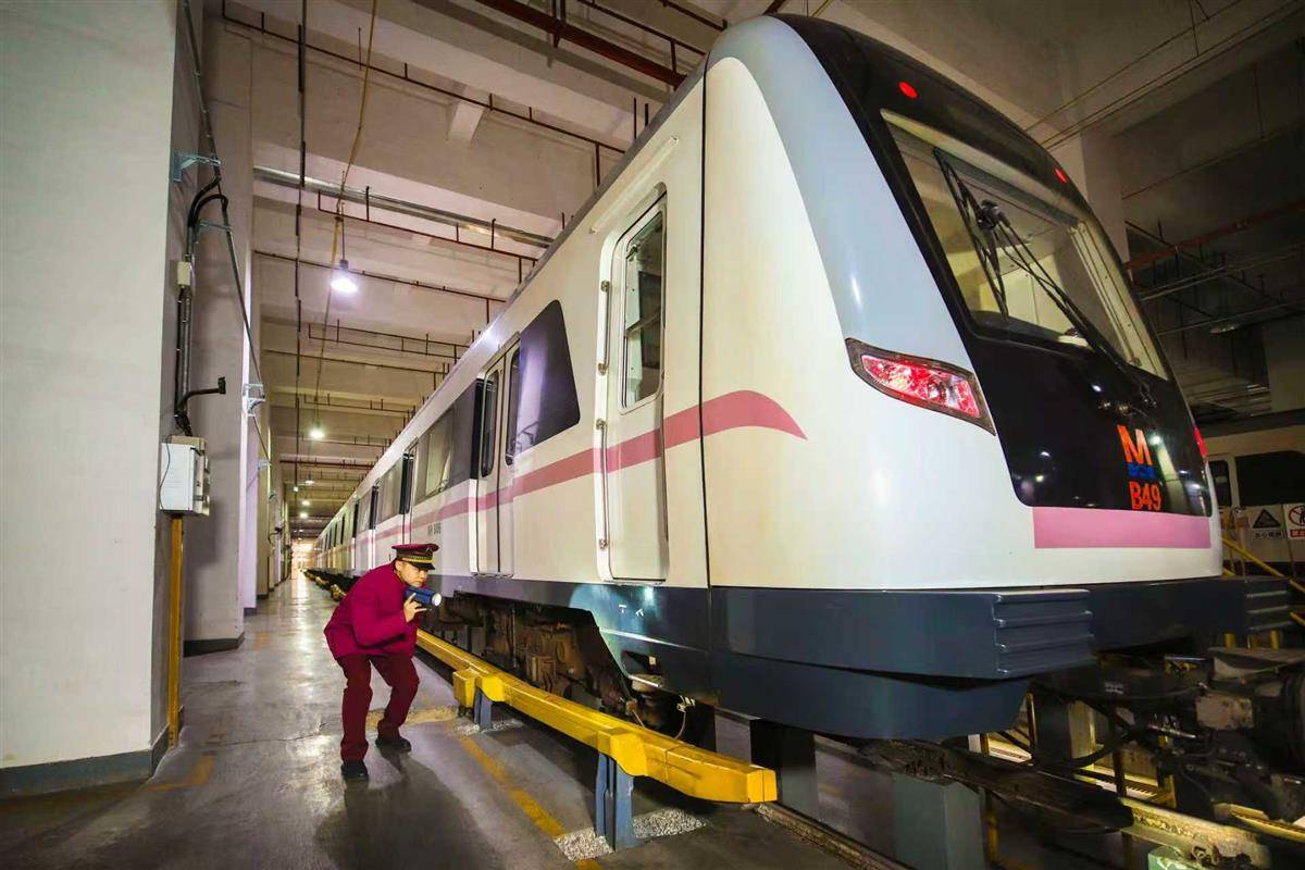 12月31日中午,地铁2号线乘务高峰组徐亮仔细检查准备上线列车 陈汉涛摄