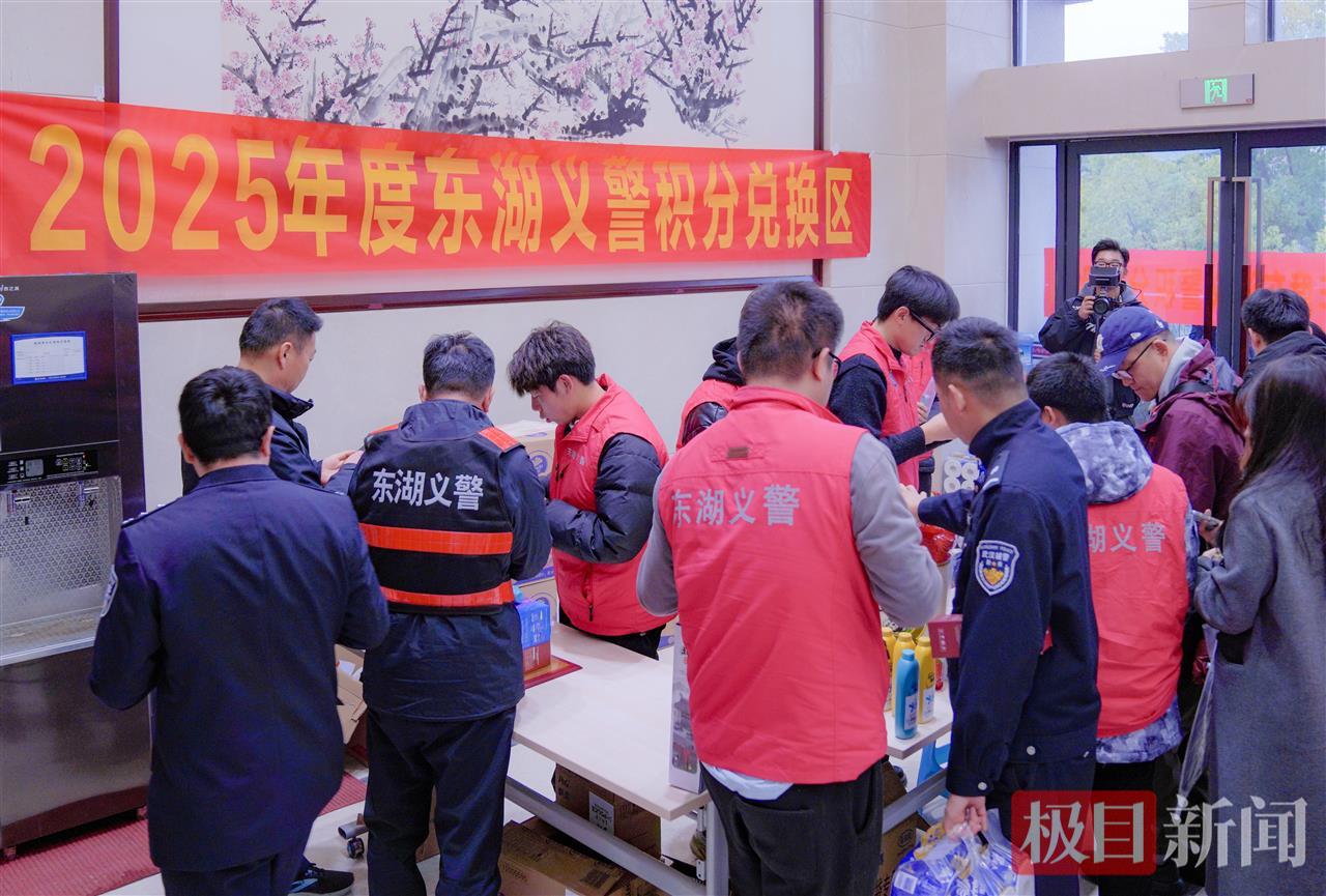 表彰环节中,除对景区、社区、高校等先进义警集体进行表彰外,张维、付学胜、李春玑等3名贡献突出的义警队员获得了电动自行车作为特别奖励。大会开始前设置的“义警积分兑换区”也吸引不少东湖义警参与,大米、洗衣液等日常生活用品可通过服务积累的积分直接兑换,让志愿者的奉献获得实实在在的回馈。