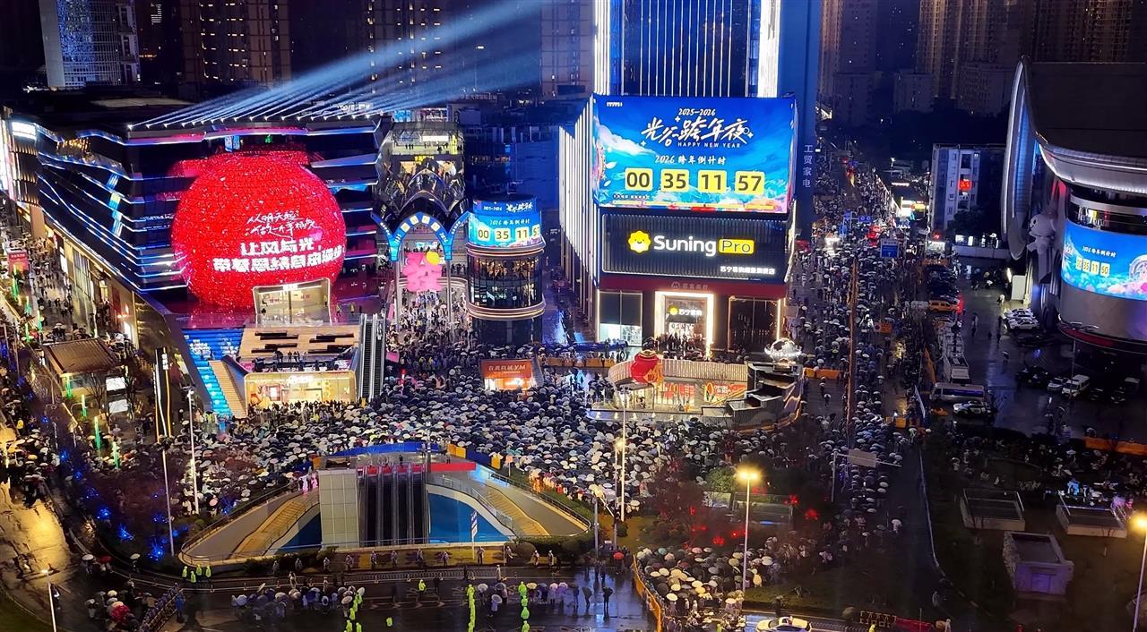位于光谷中央生态大走廊东侧的武汉大悦城商圈,也成了众多市民的室内跨年聚集地。当晚,武汉大悦城举行“次元无界•跨年音乐盛典”,人们穿着红色主题服装,边看国风表演边逛街购物,还有一些青年在照相馆拍摄新年写真,迎接2026。据介绍,跨年夜商圈总客流近9.1万人次,同比增长11.6%。