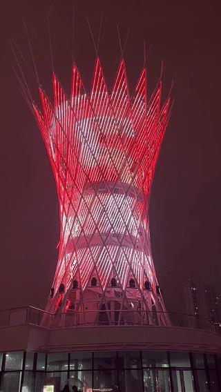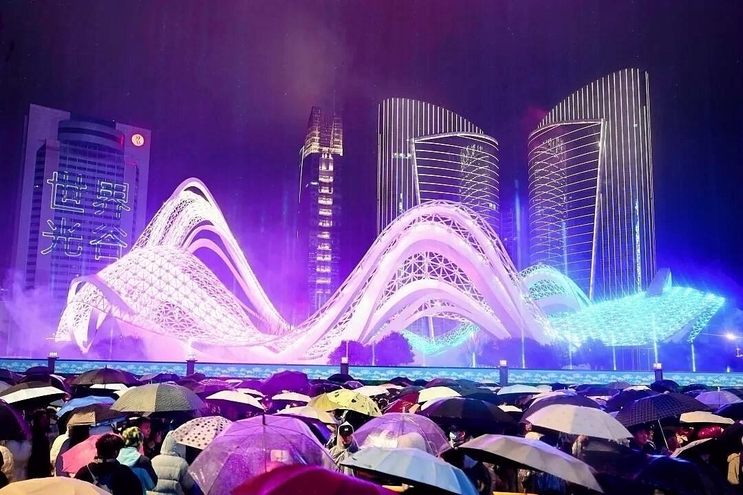 这一夜,光谷星河广场化身为梦幻舞台,上演了如星河倾泻般的光影盛宴。灯光艺术与科技美学融合,建筑立面流光溢彩,视觉效果震撼,吸引众多市民观看。