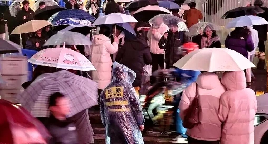 大学生刁同学从洛阳赶来看陈粒元旦场的演唱会,和朋友一起来光谷世界城跨年。她说:“虽然今天很冷,还下着雨,但是人特别多,氛围非常热闹,不虚此行。”