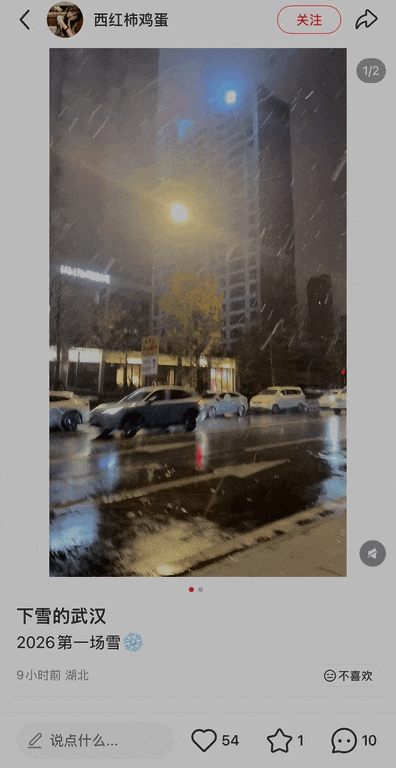 今天,武汉迎来了2026年武汉第一场雪,武汉市区多个地方飘起了雪花。