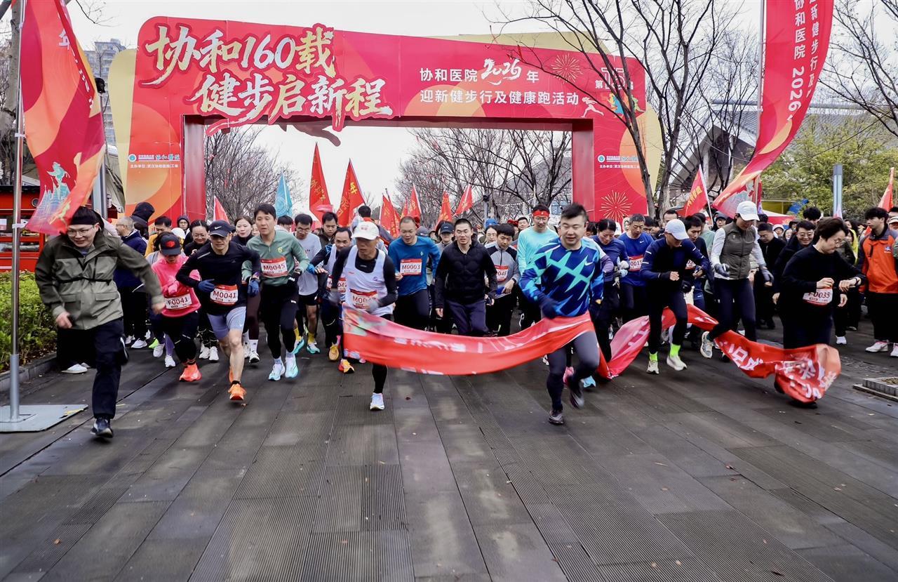 1月1日上午,华中科技大学同济医学院附属协和医院以“协和160载 健步启新程”为主题,在东湖白马驿站举办了2026年迎新健步行及健康跑活动,共1300余名职工及家属参与此次活动。