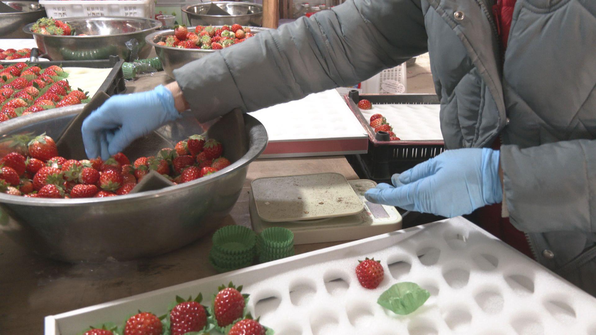 起初,跟着种植的只有几户。到如今,扩大到了三十几户。邻里之间也形成了互帮互助、分享经验的氛围,谁家的草莓品相特别好,左右乡亲都会去探个究竟。就这样,草莓种植技术如涟漪般扩散开来,从最初的一个点,逐渐连成了片。