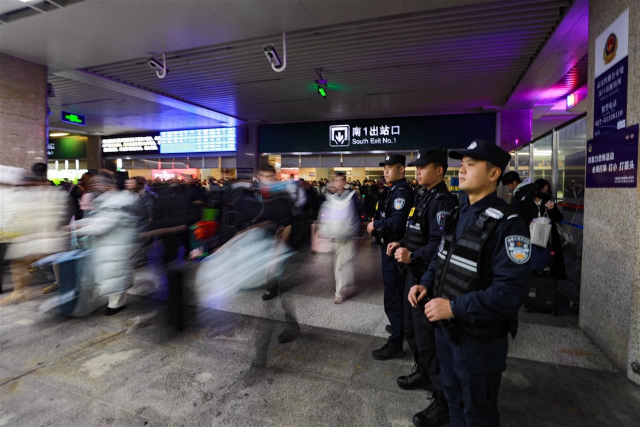 为应对旅客出行客流骤增,武汉铁路公安处与铁路客运部门密切联系,及时掌握客流情况,科学调配警力,严密落实各项安保举措,结合专项行动工作部署,抽调30余名民警增援武汉三大火车站,提高旅客列车见警率。