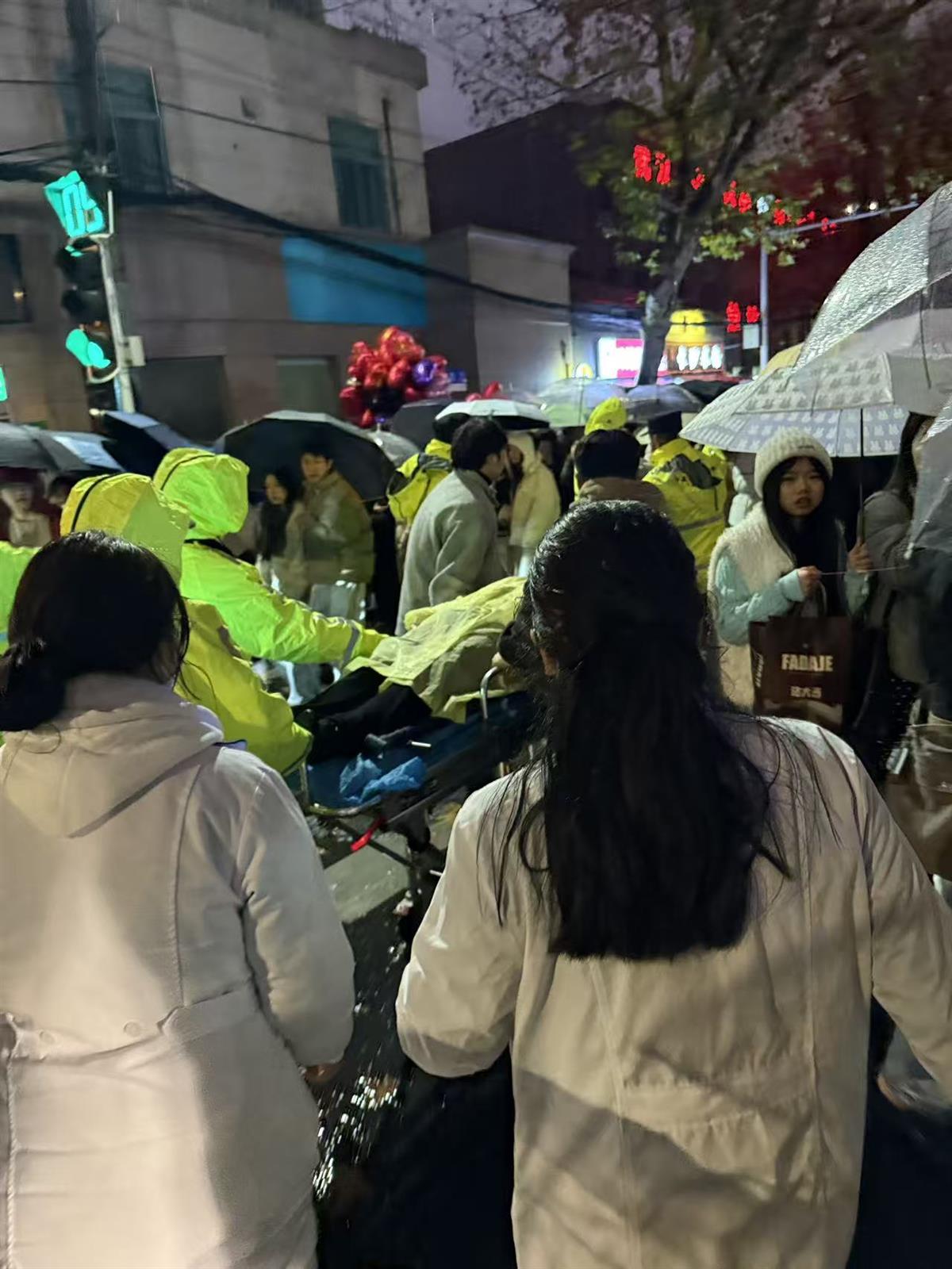 当晚在鄱阳街南京路口,塔子湖所民警在执行跨年夜安保任务时,遇到120救护车在转运一名突发疾病患者时被人群挡住了去路,无法送至医院,点位带队领导潘李君副所长立刻指挥民警牟星旭小组人员对人群进行疏散,冒雨开辟出一条生命通道,将患者安全及时护送至医院进行抢救。