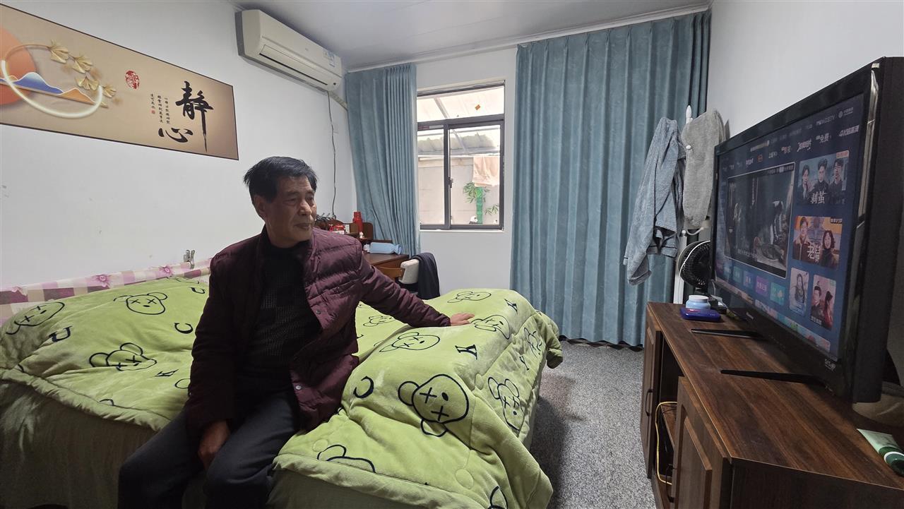聂师傅在改造后的卧室里看电视