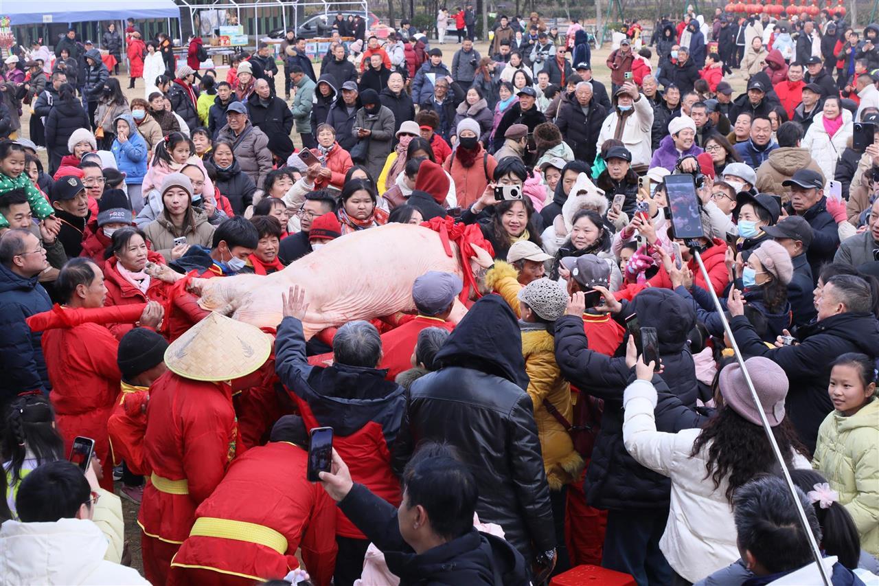 元旦期间,武汉市黄陂区野村谷景区推进“抬年猪”活动。现宰的黑猪,由八位壮汉稳稳抬起,绕场一周。锣鼓声中,游客纷纷举起手机拍照。“就像小时候村里杀年猪,全村人都来看热闹。”一位来自汉口老游客笑着说。这一抬,抬的不仅是猪,更是一份热气腾腾的乡土情,一份对新年的美好祝愿。