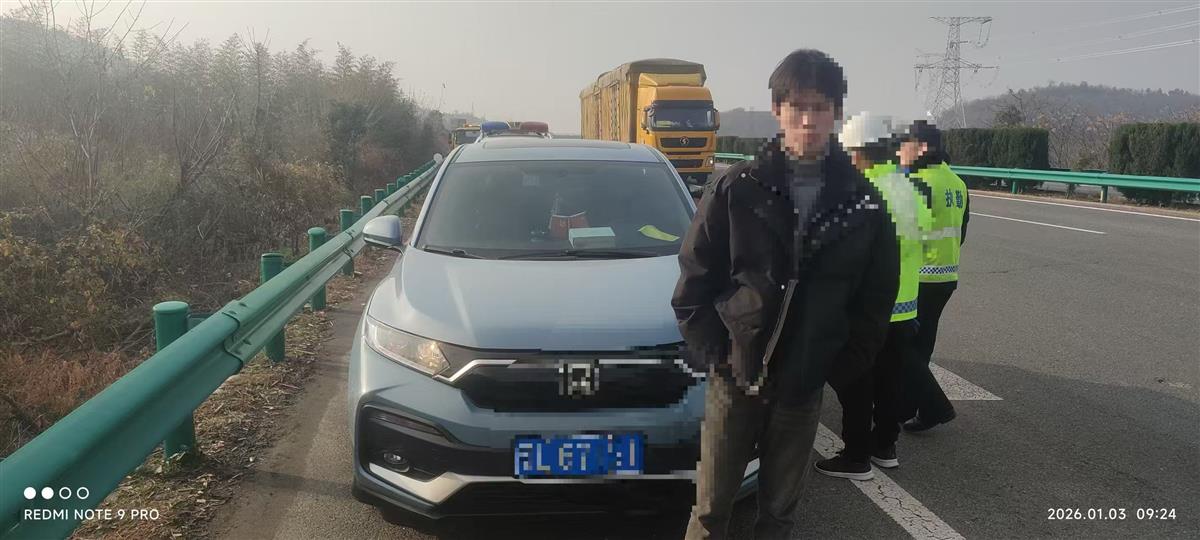 2026年1月2日傍晚,武汉经开区公安分局交通管理大队接群众报警:一位老人独自行走在武监高速应急车道上,情况危急。大队立即启动应急机制,民警韩守东、辅警邓鹏沿高速展开搜寻,同时协调高速救援、收费站等单位联动查找。不久后,交警在高速救援人员帮助下,于乌金收费站找到了老人。经询问得知:老人因急于前往医院探视家人,导致不慎误入高速。韩守东与邓鹏随即将老人扶上警车,并安全护送至目的地。见到老人平安归来,焦急等候的家属连连道谢。