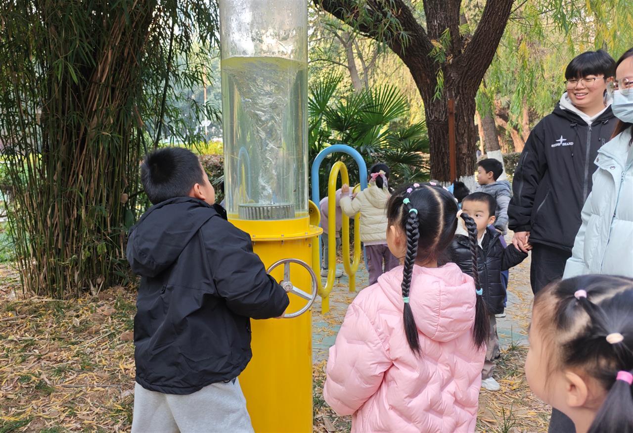 而在“我家剧场”的“风火雷电”科学探索区,手摇龙卷风、传声管两个“科学神器”也吸引了不少居民驻足。孩子们轮流摇动手摇龙卷风装置,看着透明罩内形成的“小旋风”,好奇地追问原因,志愿者则结合装置,通俗地讲解了流体动力学和气压差原理。一旁的传声管前,几对亲子家庭正对着管道“传悄悄话”,这种“隔空传声”的体验,让孩子们直观感受到了声波传播的奥秘。