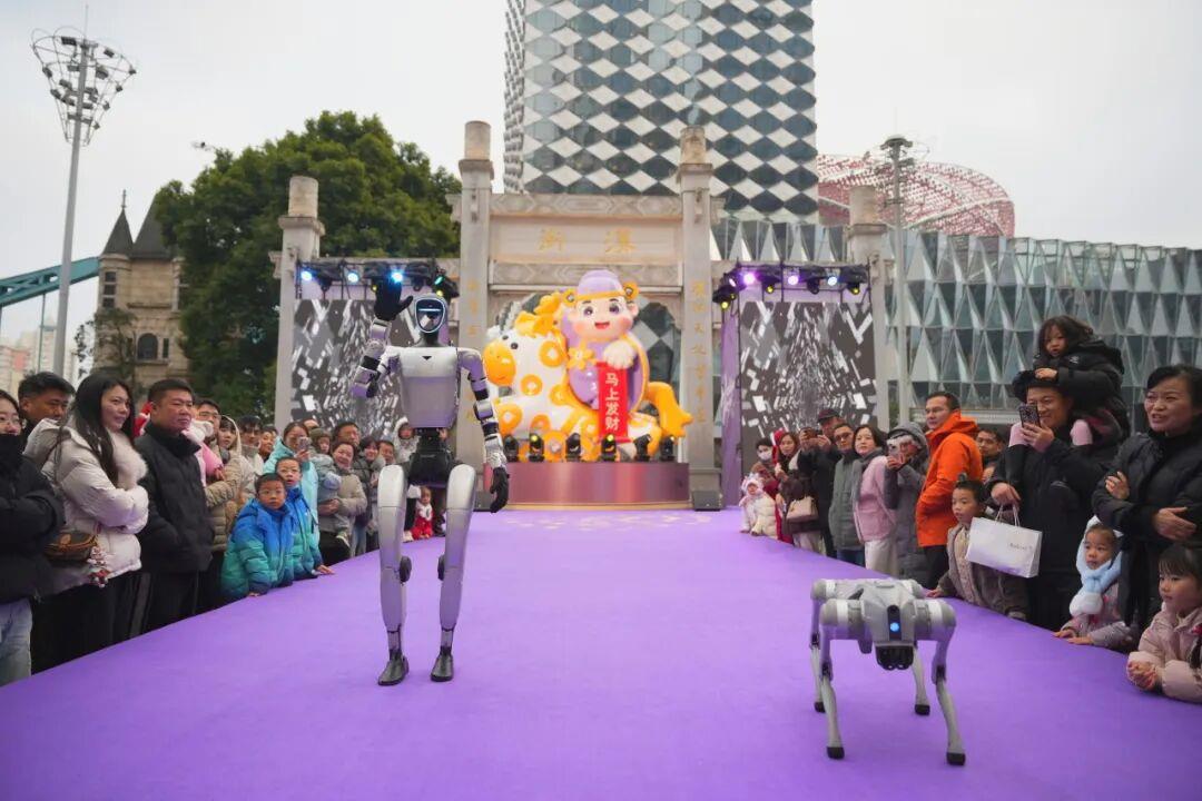 1月1日,引发全网热议的宇树机器人惊喜亮相武汉楚河汉街,不仅在街头巡游,还一会儿跟着民乐跳舞,一会儿和模特并肩走秀,一会儿和游客握手互动……所到之处吸引众人围观打卡,成为街头焦点。