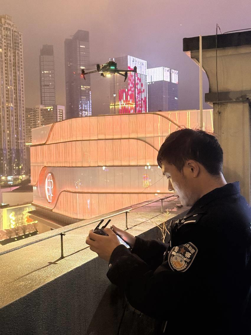 当晚,红色飞手联盟成员便与武昌公安“黄鹤卫翼”无人机战队密切配合,在跨年夜重点区域开展空中巡逻,与公安民警、“黄鹤卫士”义警共同构建起“空地一体”的防控体系,用翱翔的“鹰眼”守护跨年夜平安,护航2026年崭新开篇。