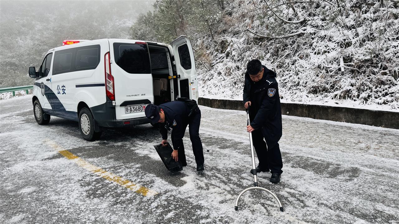 经过一个多小时的奋战,路面冰雪已被清除,道路恢复畅通。他们一边除雪,一边耐心引导假期车流、提醒游客小心路滑。风雪中忙碌的藏蓝身影,成了假日景区里另一道让人安心的“风景”。