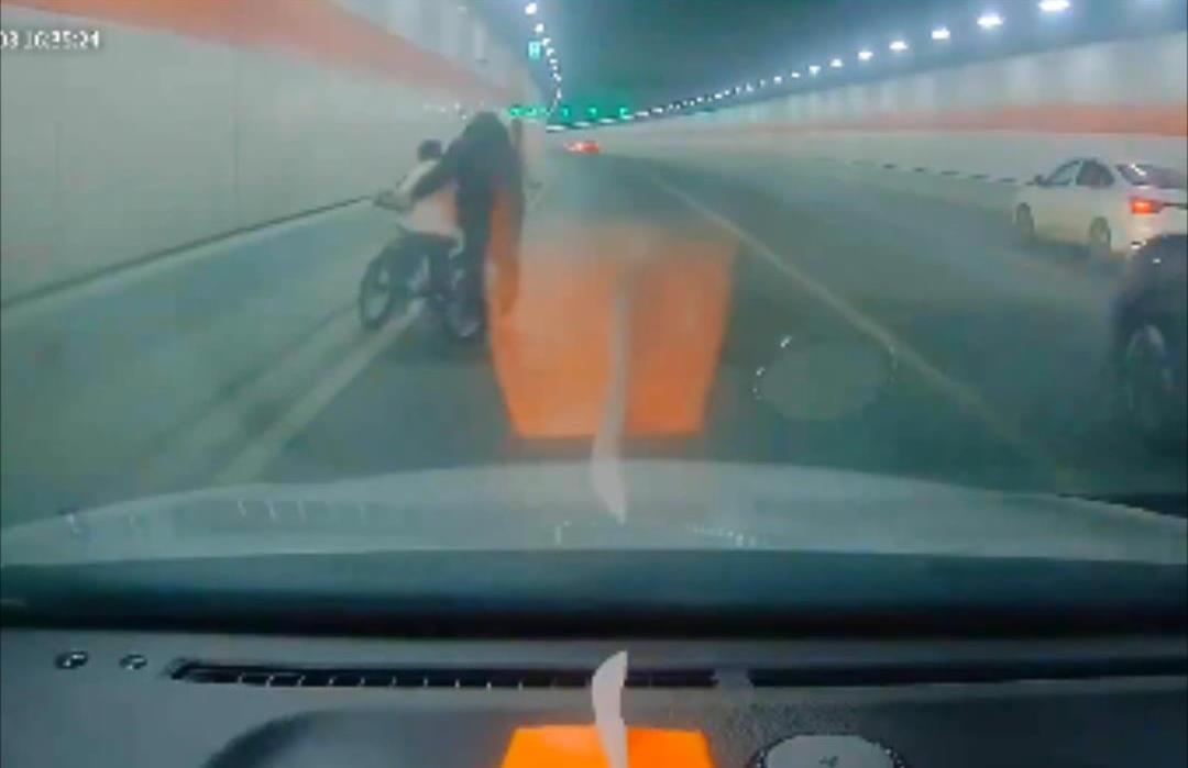 1月3日16时32分,一名男孩独自骑车游玩,因为好奇,误入武汉长江公铁隧道。隧道内光线昏暗、车流密集,男孩感到心慌,既不知如何掉头,也不敢随意停留,只能在车道内小心翼翼地呈S形向前骑行。这惊险一幕,恰好被正在隧道内行驶的蔡先生发现。他当即保持匀速跟在孩子身后守护。