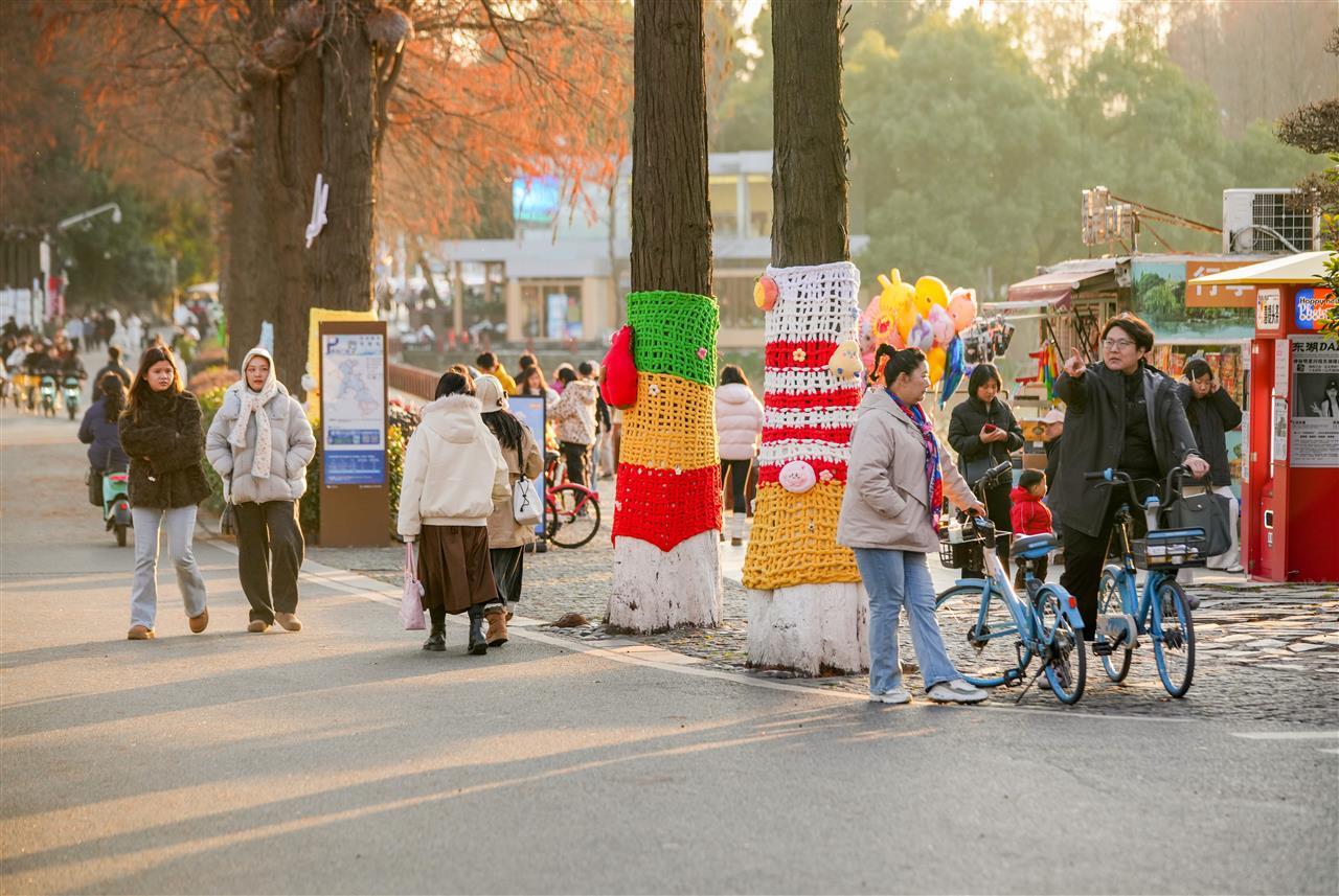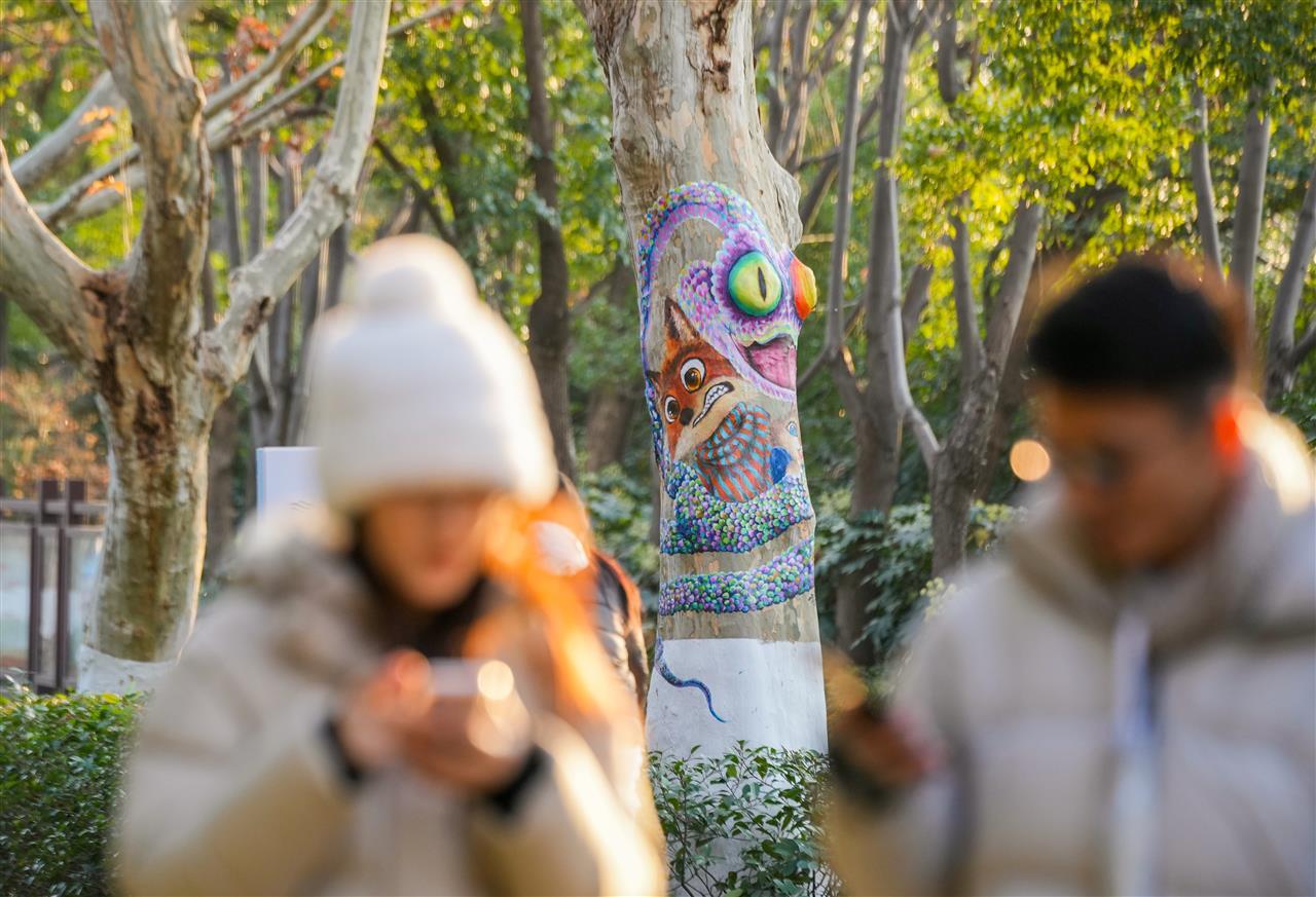 “不管晴天雨天,东湖都有新风景!”游客们纷纷驻足与彩绘大树合影,灵动的创意设计让冬日绿道焕发新活力。这场自然与艺术的碰撞,不仅为市民游客带来沉浸式游览体验,更彰显了武汉东湖的热情与创意。