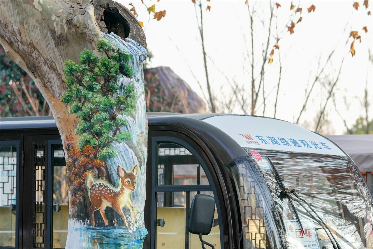 1月7日,记者在东湖绿道楚风园路段看到,手绘师正结合树干形态精心创作,熊猫、兔子、狐狸、小鹿等动物形象跃然树上,部分树干还绘有搞怪表情与自然风光,与湖光山色相映成趣。这些创意装扮采用环保丙烯颜料,既不伤害树木,还能遮盖部分破损痕迹,搭配色彩缤纷的编织“毛衣”,让冬日绿道暖意十足。