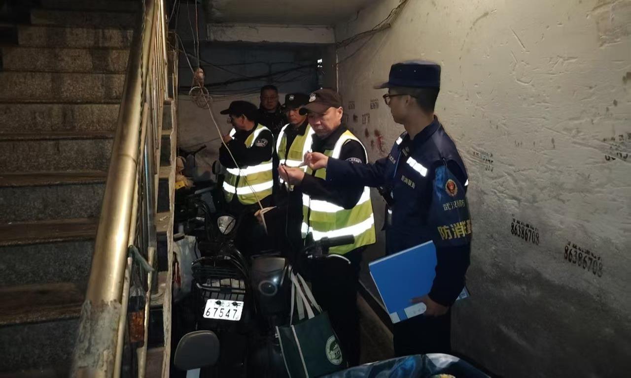 在武昌区,消防员走进东亭社区开展“防消联勤”夜巡工作。在一栋老旧居民小区一楼的楼道内,消防员发现多辆电动自行车违规停放,同时还存在私拉电线充电等现象。消防员当场制止了居民的违规行为,并对其进行警示教育。同时,要求社区安保及相关负责人加强隐患排查,确保整改措施落实到位,为居民营造安全的生活环境。