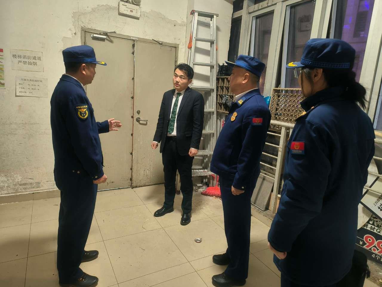 在洪山区,武汉市消防救援支队副支队长张如波深入调研指导周三消防安全夜巡工作。在正堂时代稻香餐厅、空镜KTV等人员密集场所,张如波副支队长现场查看了消防安全信息公示及疏散指示图,重点检查了消防安全责任制落实、厨房防火分隔设置、消防器材配置及维护、消防控制室值班值守、电气线路敷设以及高层建筑防火门开闭等情况。张如波强调:要紧盯冬春火灾防控关键时期,加大隐患排查整治力度,确保消防安全形势稳定。
