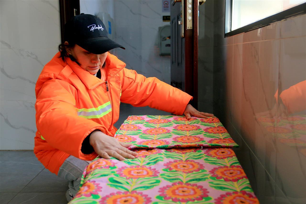 今年46岁的公厕管理员邱运芳,上岗10个月。她发现,隔壁公园晨练完毕的老人过来如厕时,常要扶着栏杆上二楼,休息室的座椅也总有人歇脚。待到天气转冷,金属栏杆和硬质座椅触摸会感到冰凉。“老人腿脚不比年轻人,得让他们扶得暖、坐得舒心。”于是,邱运芳找来旧衣物和布料,巧手裁剪缝制,为栏杆穿上“碎花外套”,给座椅加上“海绵垫子”。这些看似简单的手工,却让常来公园跳舞的陈婆婆连连称赞:管理员有心了,天虽冷,心里暖。