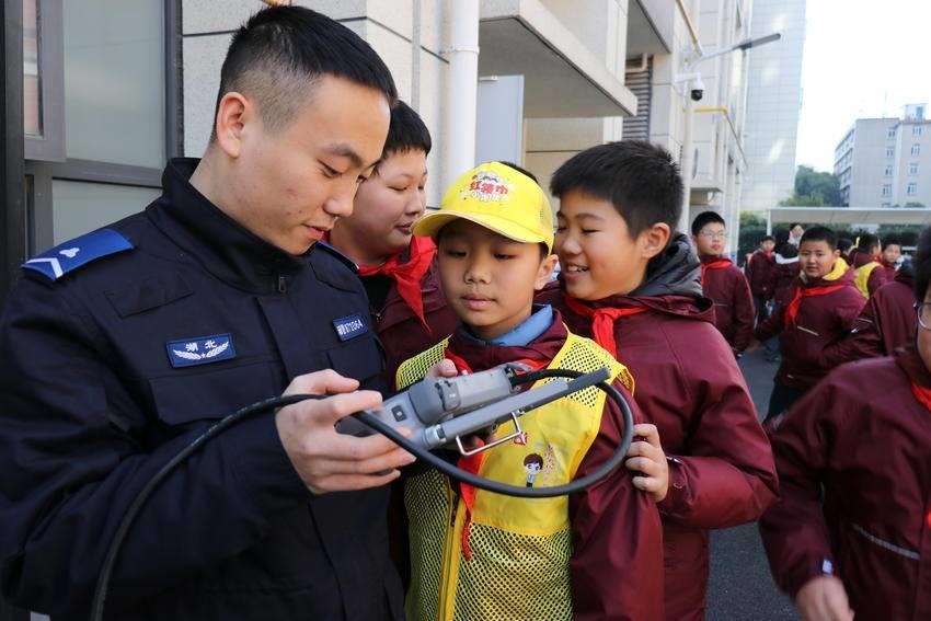 “快看,屏幕上是三年级的同学们。”当五年级的学生们走入首义路街派出所时就被大厅的大屏幕吸引,原来无人机已经悄然升空,并对还在派出所外的三年级同学喊话:“欢迎中山路小学的师生们。”三年级的小朋友们兴奋地跳起来挥手回应。“无人机广泛参与我们的日常工作当中,比如人员走失了,发生交通事故等等,我们很快就能赶到现场解决问题!”民警邱星烁通过无人机实时转播的画面,让同学们直观感受科技赋能警务的力量。