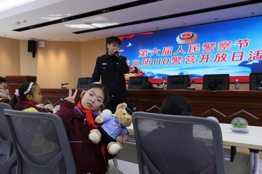随后,在派出所5楼,民警温苏阳和罗景炜以风趣幽默的讲解,为同学们展示了警棍、盾牌等警用装备。“现在快速回答我,遇到交通事故的报警电话是多少?”“122!”民警通过互动提问的方式,帮助学生们巩固安全知识,还为答对的同学送上警察小熊等礼品,现场氛围十分热烈。