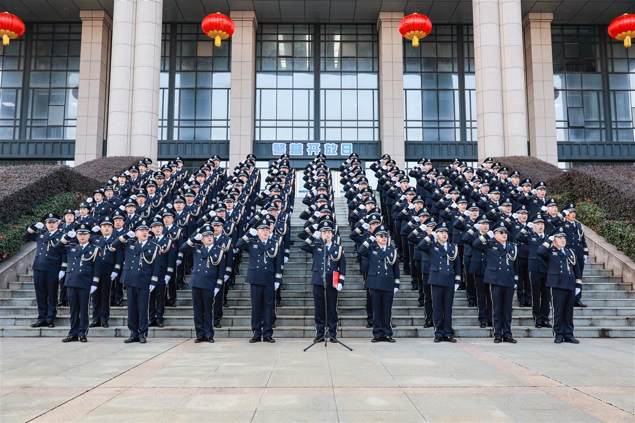警旗升至杆顶,在武汉公安先锋民警涂凯峰的带领下,全体人员高举右拳,庄严宣誓:“我是中国人民警察,我宣誓……”铿锵有力的誓言回荡在广场上空,久久不散。民警们眼中闪烁着激动的光芒,这熟悉的誓词,每一次重温,都让人回想起从警初心与肩上沉甸甸的责任。