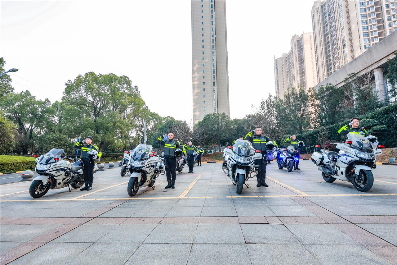 现场,除了民警代表,还有两支特别的队伍引人注目——郑店公安检查站的快反队员和交通大队的汉警快骑队员。24台警用摩托车整齐列队,24名队员身姿挺拔。他们是江夏街头常见的平安风景,此刻在警旗下与战友们共同接受荣耀的洗礼。