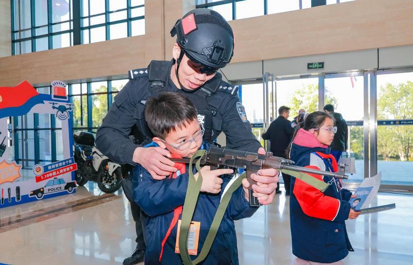 普法与安全互动区同样热闹。法制大队设置的“未成年人保护法答题角”前,少年警队队员们争相举手抢答;治安大队的消防安全竞猜中,“九小场所灭火器多久检查一次”的问题刚抛出,社区代表魏娟立刻报出答案,赢取了定制消防便签。而在反诈中心,民警向前来参观的群众详细展示诈骗预警流程,银行代表曾女士感慨:“这下更清楚如何配合警方止损了。”