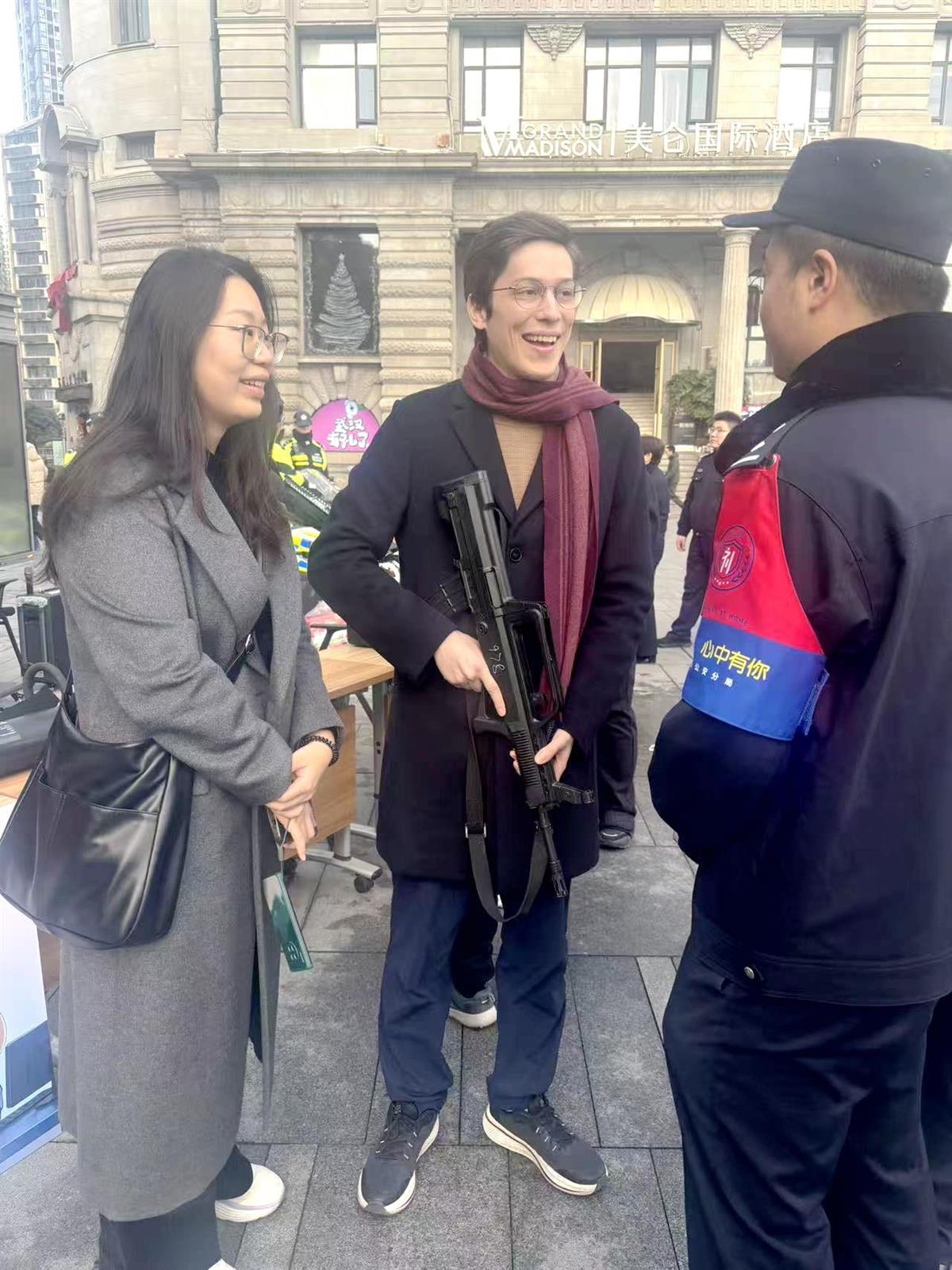 “这把枪好重啊!”John在民警的悉心指导下,小心翼翼地拿起一把模拟步枪,眼中满是震撼。“这是我第一次接触枪械,体验太特别了。在中国生活一直让我倍感安心,今天近距离了解这些守护平安的‘利器’,更觉得踏实了。”他的感慨道出了现场不少群众的心声。