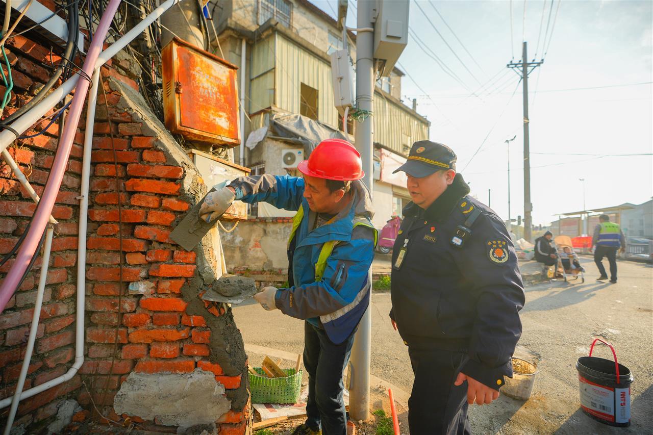 体及人行道树周边杂乱管线进行规整,清理冗余管线,消除了管线安全隐患。城管部门重点推进沿线环境美化与隐患整治,对八一路等景区必经之路的一处斑驳墙体进行刷白,执法中队同步排查整治沿线脏污破损围挡,督促责任主体进行维修、更换,让道路两侧风貌焕然一新。