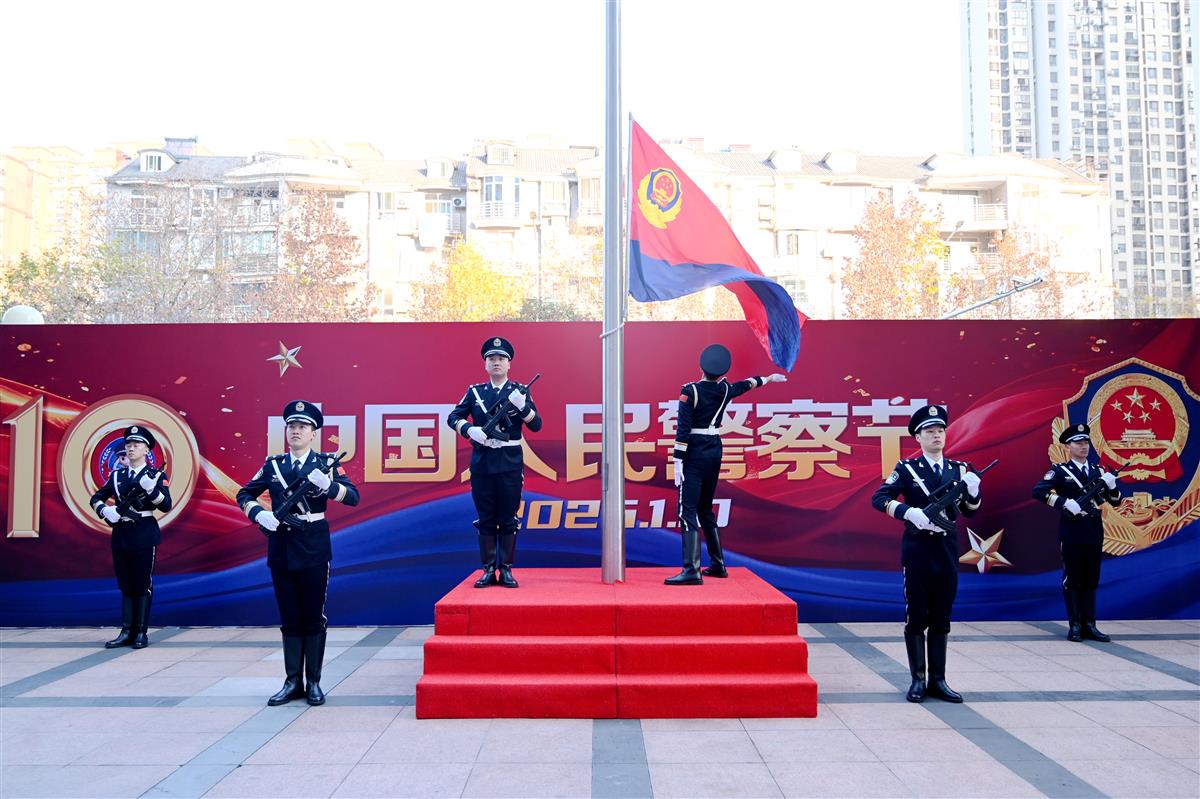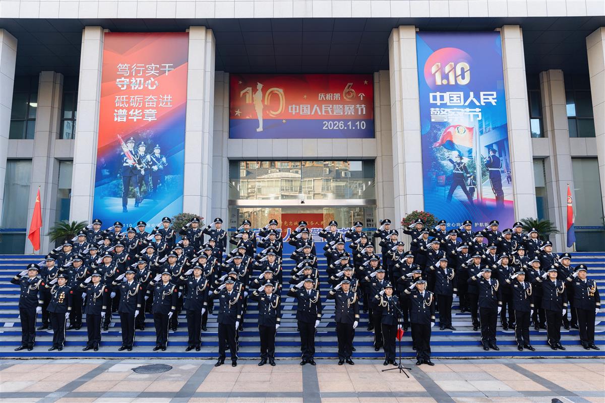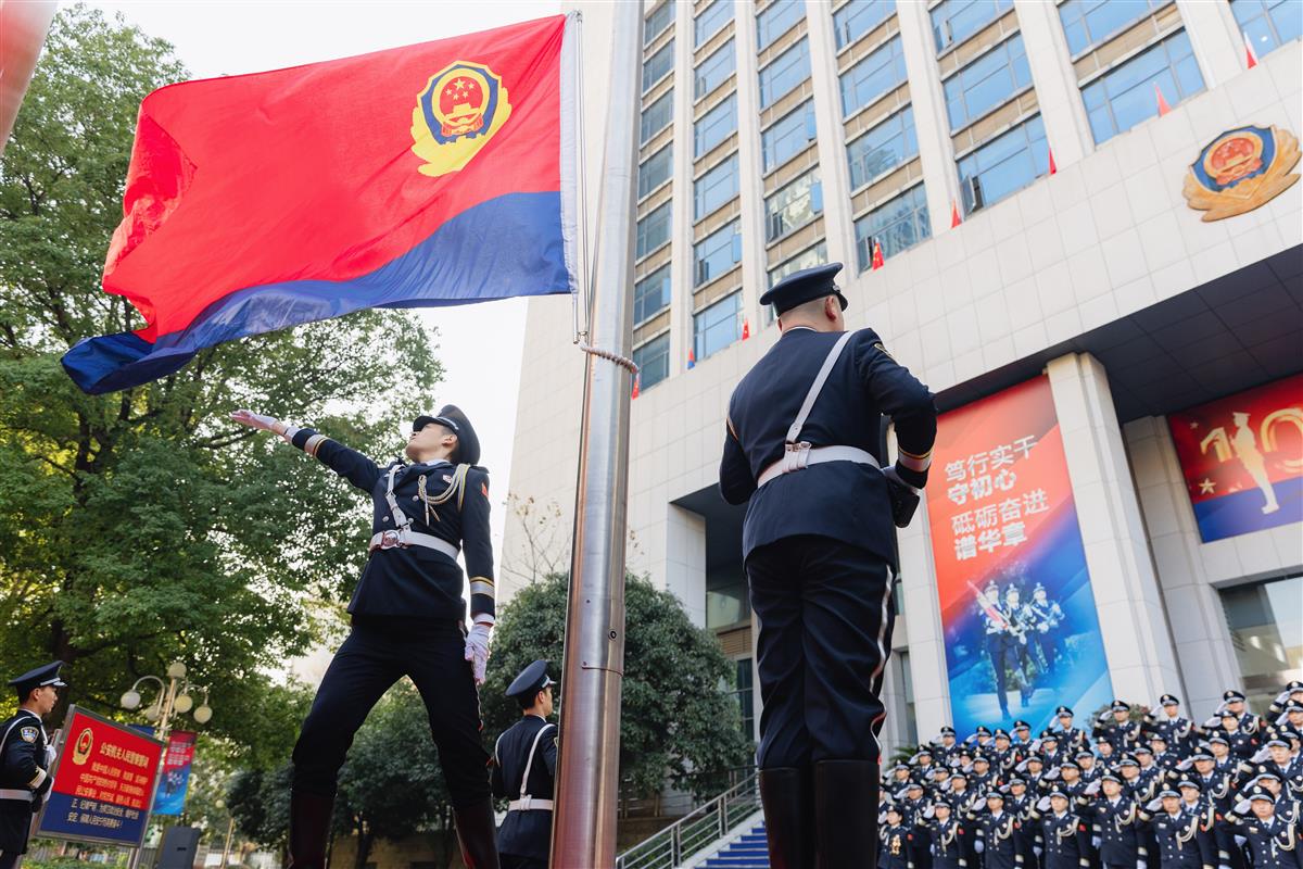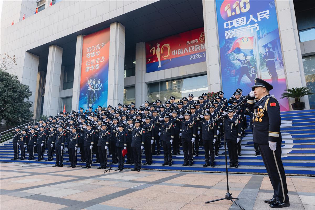 上午9时整,仪式正式开始。院内气氛庄严肃穆,来自分局机关、各派出所、警务站的主要领导及先进典型代表共110人肃立在广场。他们中,有屡破大案要案的刑侦尖兵,有数十年扎根社区的“贴心人”,有在街头巷尾日夜巡逻的平安守护者,也有在窗口微笑服务群众的柔情卫士。此刻,他们共同伫立,代表着江岸公安这支忠诚之师、威武之师。