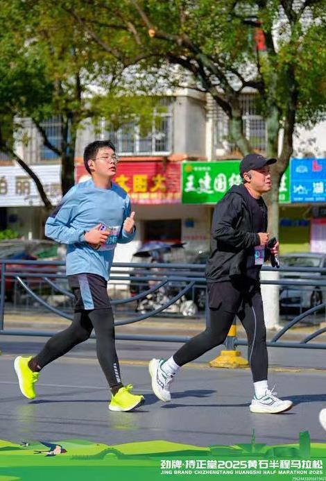 这份坚持在年底迎来硕果。2025年12月14日黄石马拉松赛场,在退役军人张艳红、刘勇辉、鲍金龙的陪同和鼓劲下,李恣轩以2小时20分顺利完赛半马。根据跑圈标准,这一成绩已达到半马“成熟水平”,对于仅坚持跑步半年的新手而言,无疑是巨大的突破。