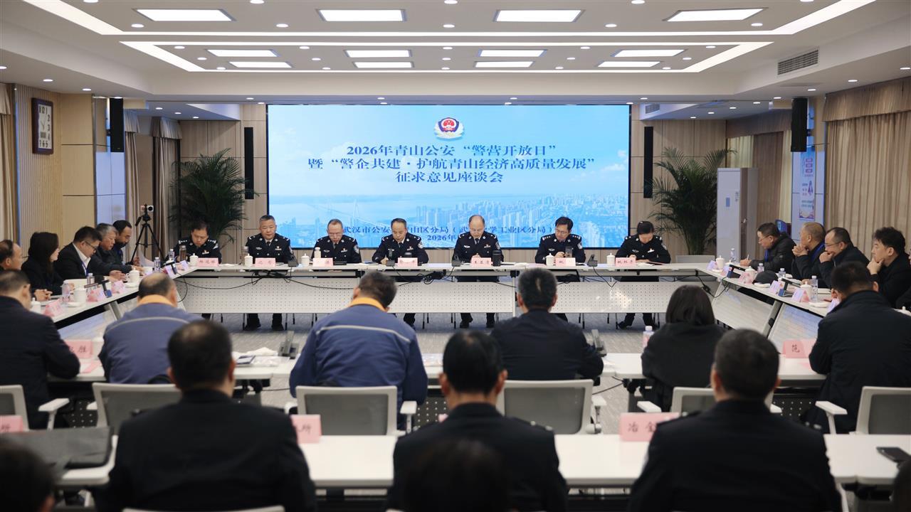 在第六个中国人民警察节到来之际,1月9日上午,武汉市公安局青山区分局(武汉化学工业区分局)举办“2026年警营开放日”暨“警企共建·护航青山经济高质量发展”征求意见座谈会。
