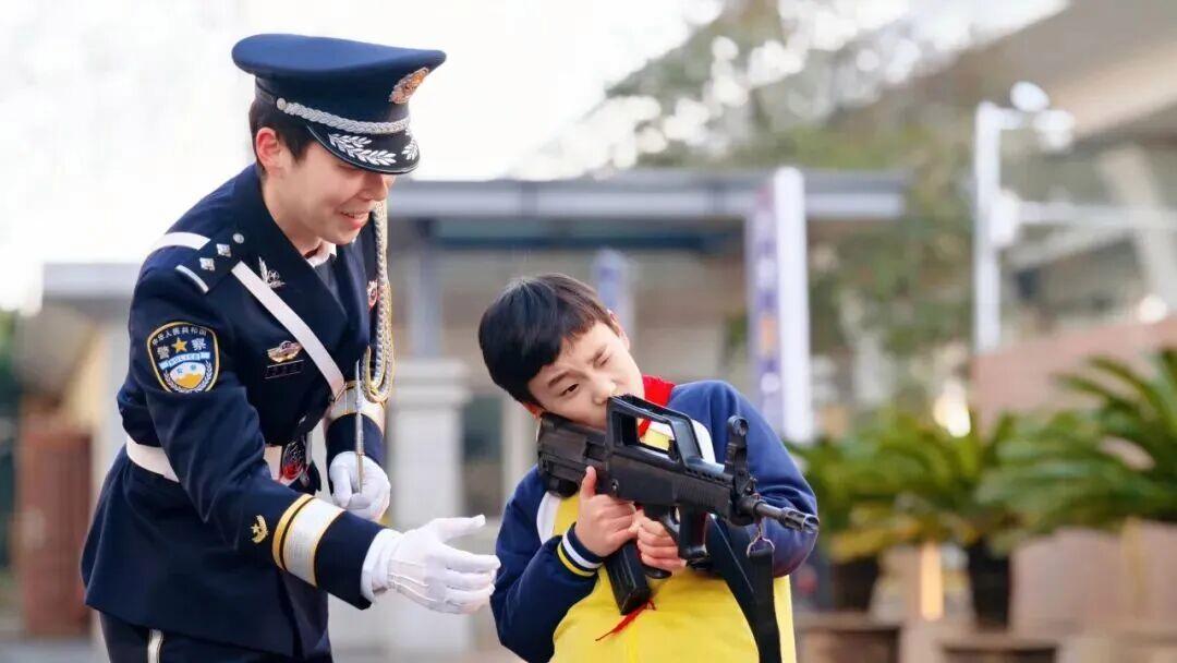 1月9日,姜安迪在父亲的陪伴下走进警营。当警旗冉冉升起,他跟着民警们一起行注目礼,好奇的眼神里多了敬意。仪式结束后,民警们看出他对警用装备的兴趣,笑着递过训练用枪让他观摩,男孩的眼睛瞬间亮了:“长大我也要当能守护大家的警察!”