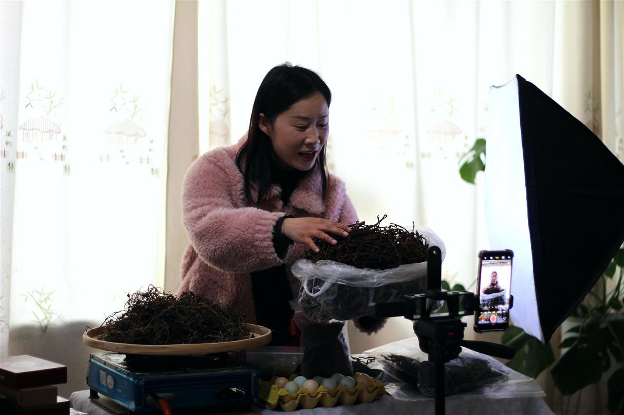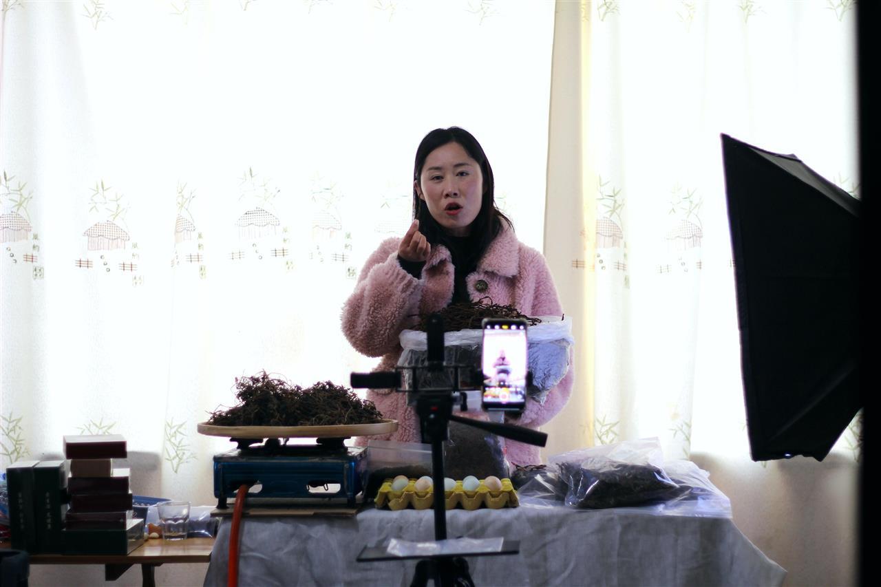 渐渐地,直播间骂声变成了点赞,粉丝从几百人涨到2.8万人。她的直播充满烟火气:帮卖农副产品自贴运费,连夜直播帮养牛户一天卖两头牛,村里的土鸡汤、干菜、手工饰品都通过镜头走进城里。