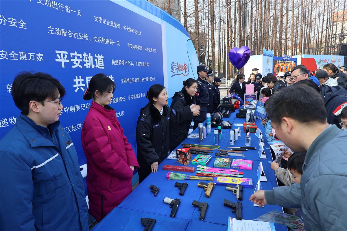 平安轨道,共同缔造。穿过活动现场的主题门楼,醒目的平安武汉建设成果展展板矗立。其中,以“砥砺初心勇担使命全力守护地下城安宁”为主题的展板,向市民群众汇报轨道公安工作成绩。2025年,在市局党委的坚强领导下,分局活用“小切口、大纵深”工作方法,统筹业务、队伍两条流线建设,圆满完成跨年夜、长江文化艺术季开幕式等重大安保活动200余场次,安全护送14.6亿乘客出行,民生案件大会战盗窃刑事案件、接触性诈骗刑事案件破案率达100%,获评省扶残助残先进集体,全年提供便民服务6万余次,有力维护全市轨道交通治安大局平稳和乘客出行平安。