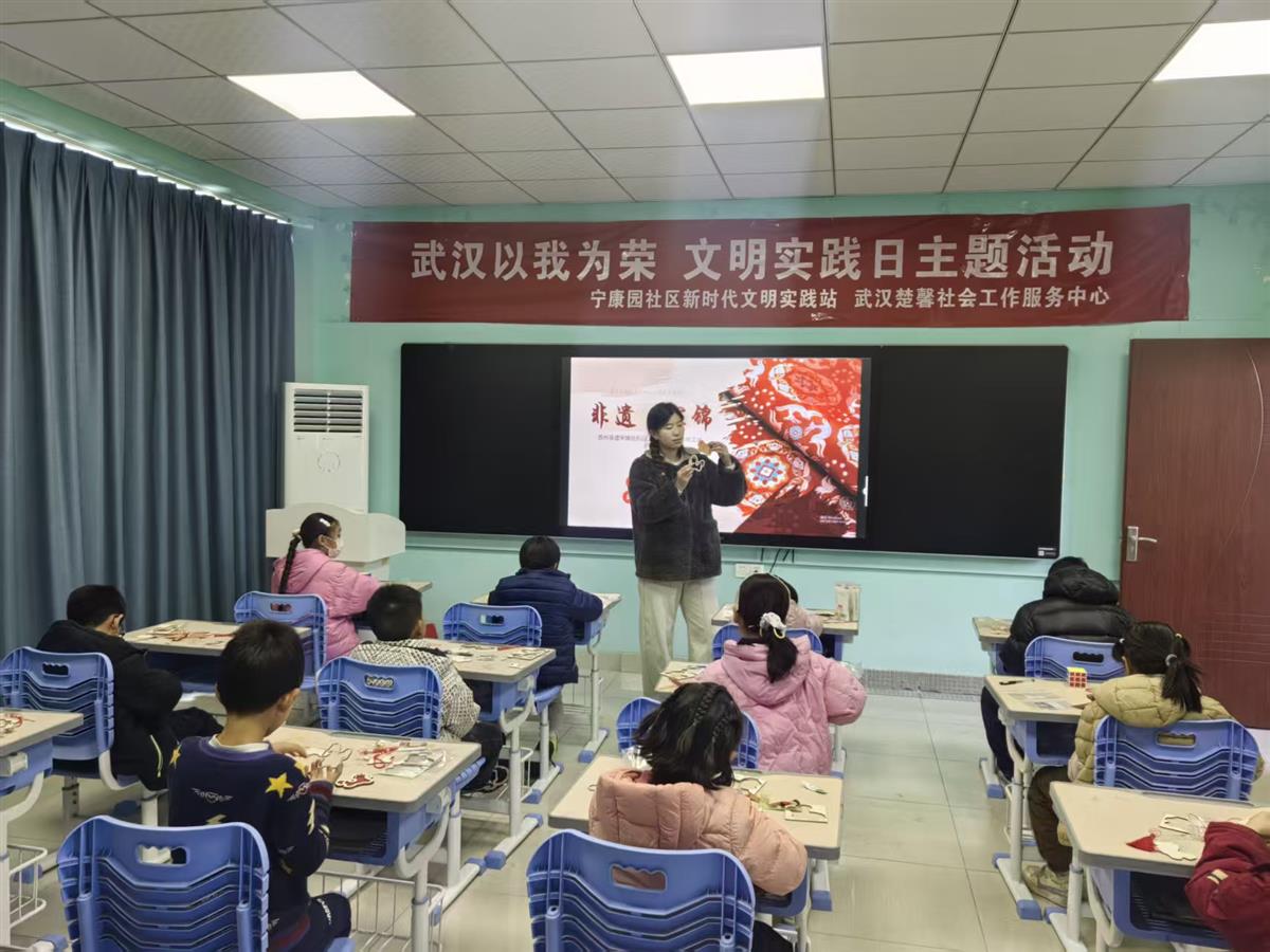 1月9日,武汉经开区沌口街道宁康园社区团支部开展主题为“锦韵传香 风铃寄情”非遗宋锦风铃手工制作活动,让孩子们在动手实践中感受宋锦之美,体验传统工艺的独特魅力。