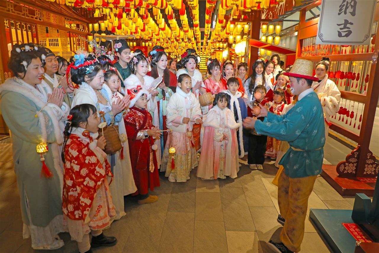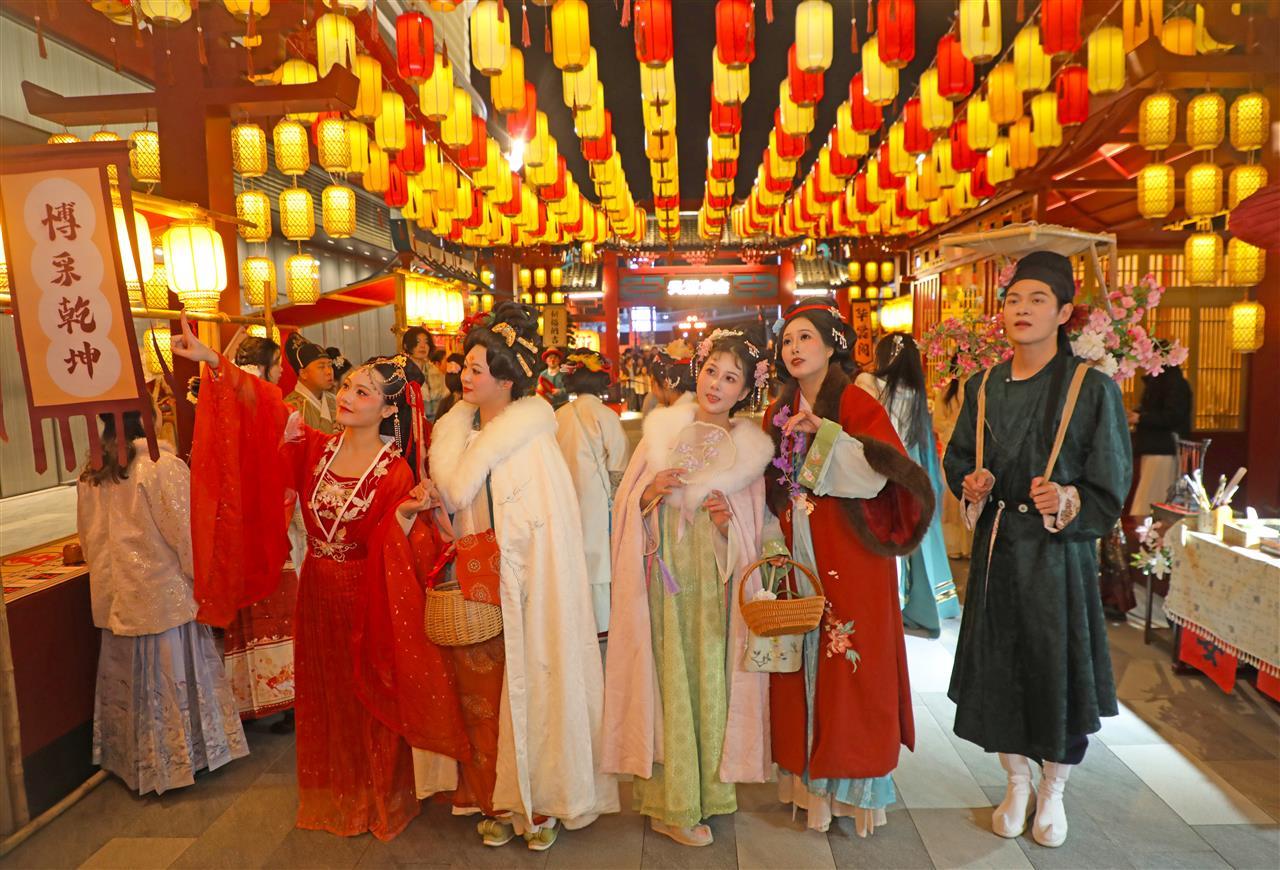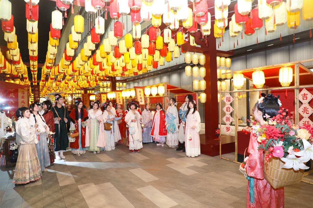 1月10日晚,武汉新荣天街庙会开启。踏入庙会长街,2000余盏灯笼织就璀璨灯海,宋韵雅韵随着夜色铺展开来,华裳阁、宋趣游艺坊、宋韵医坊等十大古风体验区依次排开,十区十景,一步一趣,皆是新年的红火气象。据悉,天街庙会将持续到元宵节。
