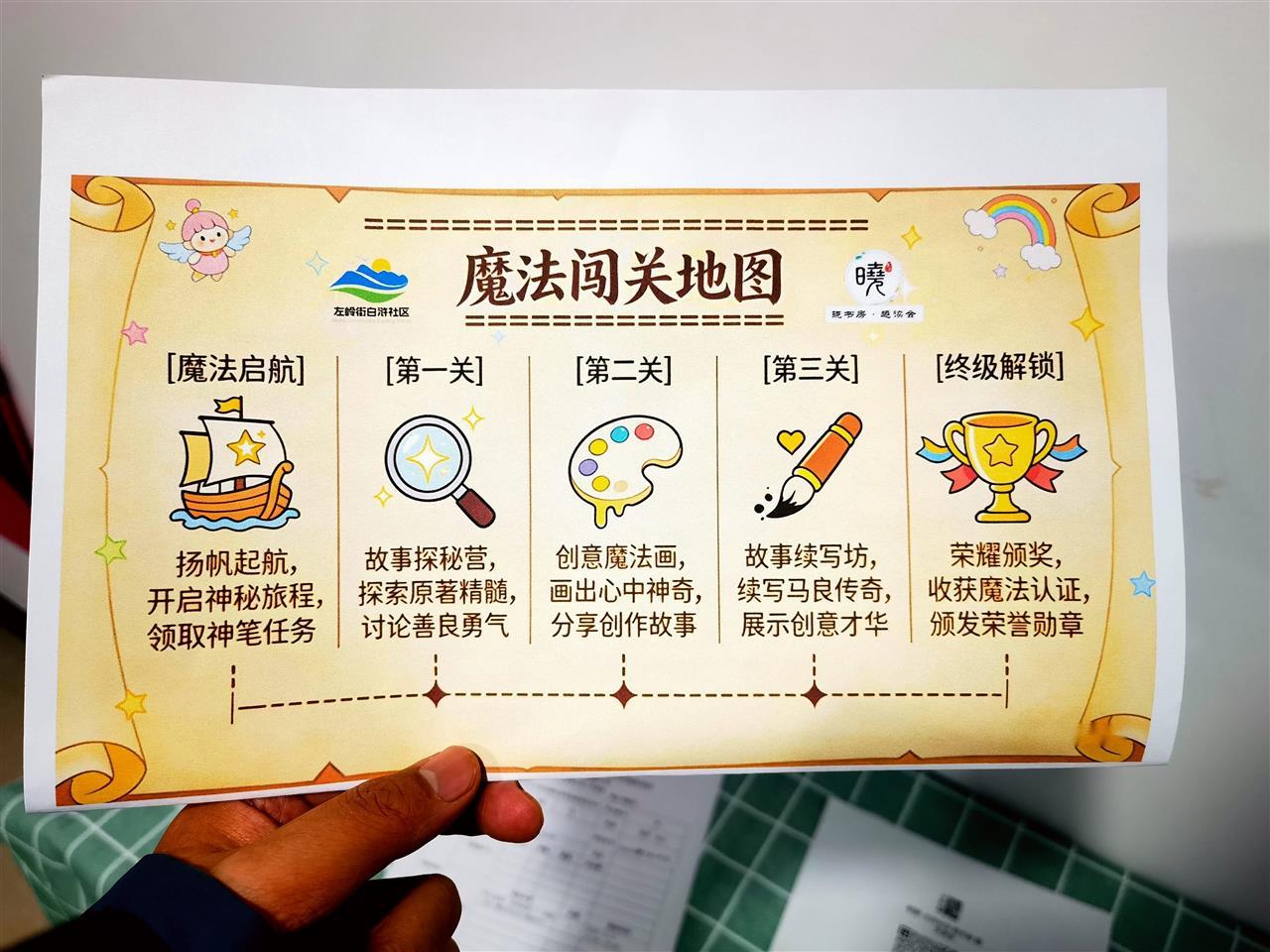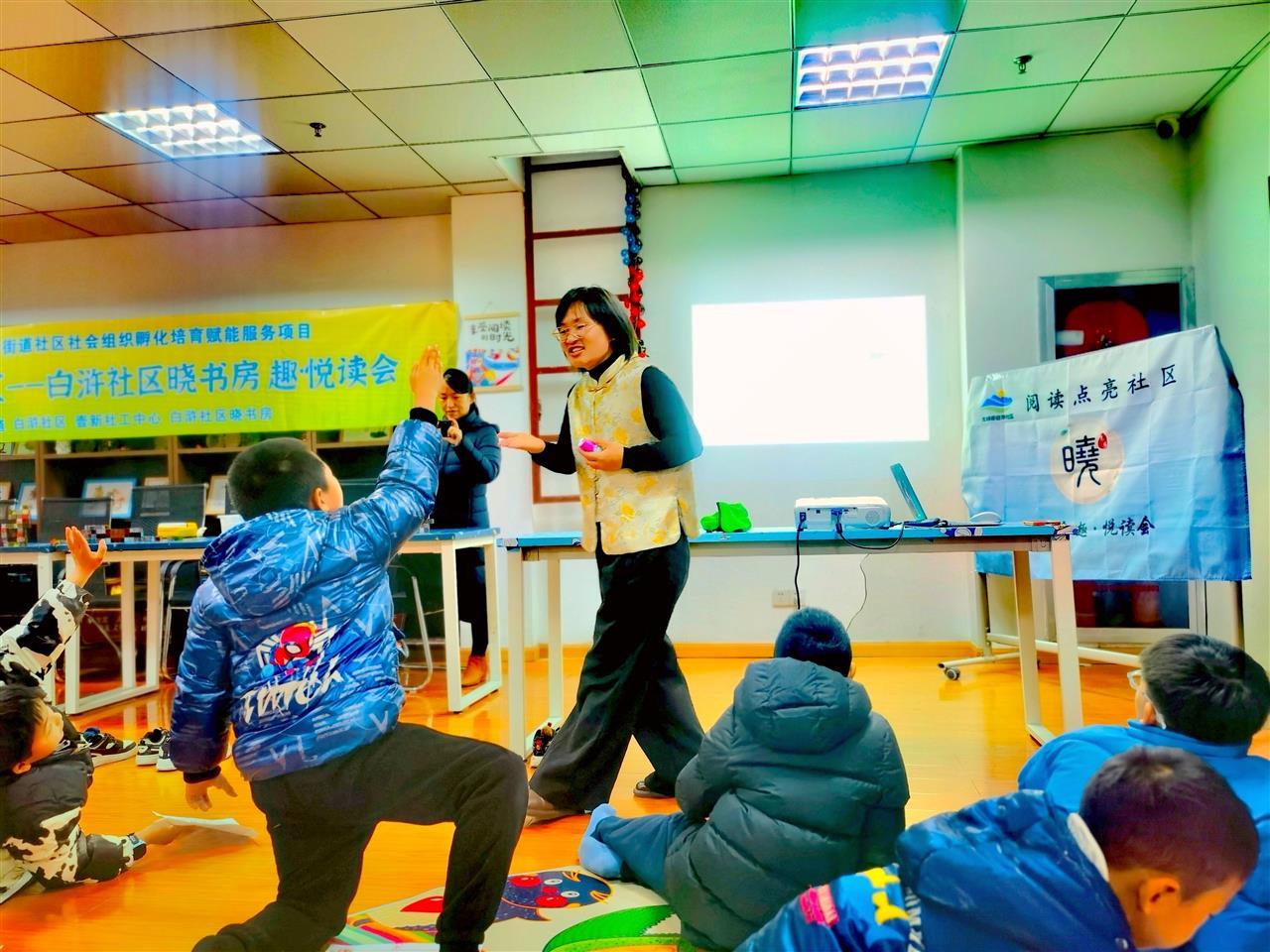 去年冬天的一个周日,在白浒社区党群服务中心阅读室,“晓书房”主理人牛晓芳带着14名社区的小朋友,一起玩“魔法闯关地图”。