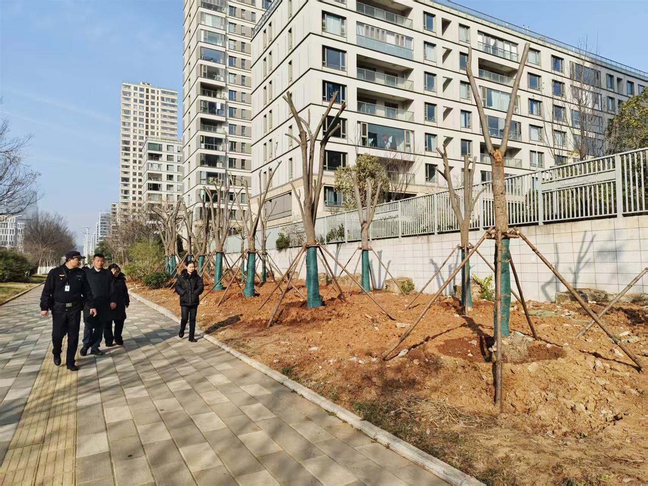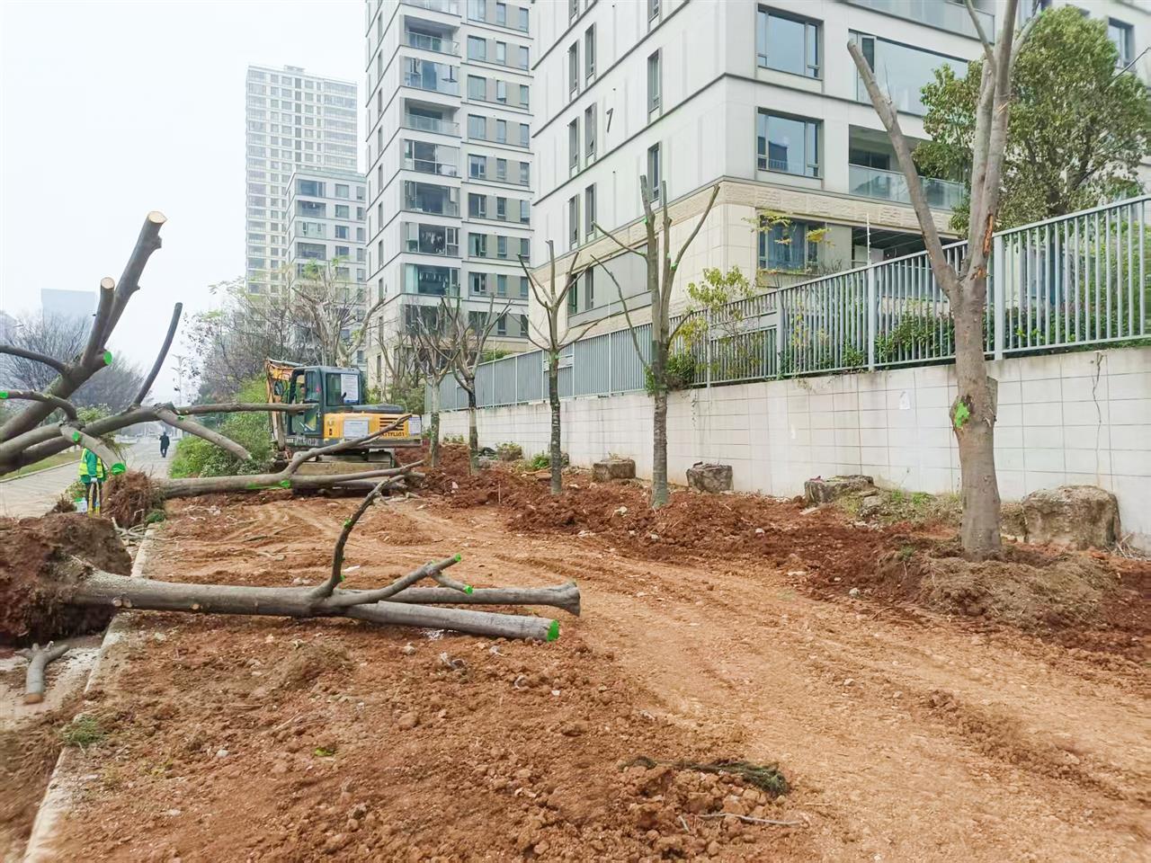 为根治这一顽疾,九峰街道综合执法中心转变思路,牵头联动多方力量,对此处进行综合治理。首先协调原路段施工方,对存在安全隐患的基坑进行了彻底的填埋和平整。同时,积极对接东湖高新区城管执法局,精心挑选并移栽了适宜的乔木,为地块披上了“绿装”。