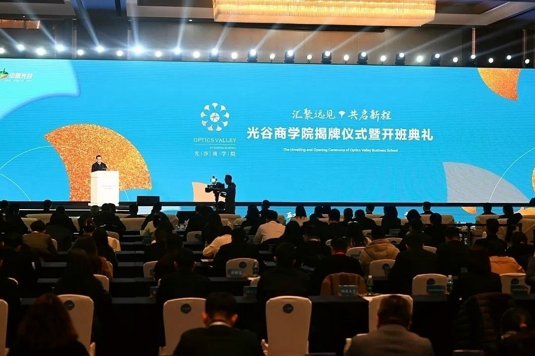 1月13日,武汉市东湖高新区光谷商学院在武汉光谷科技会展中心正式揭牌,首期“卓越班”同步开班。该学院由建设中的“世界光谷”整合各方优质资源打造,由光谷人才集团负责实体化运营。学界专家、知名企业家代表和首期学员等共同见证这一时刻。