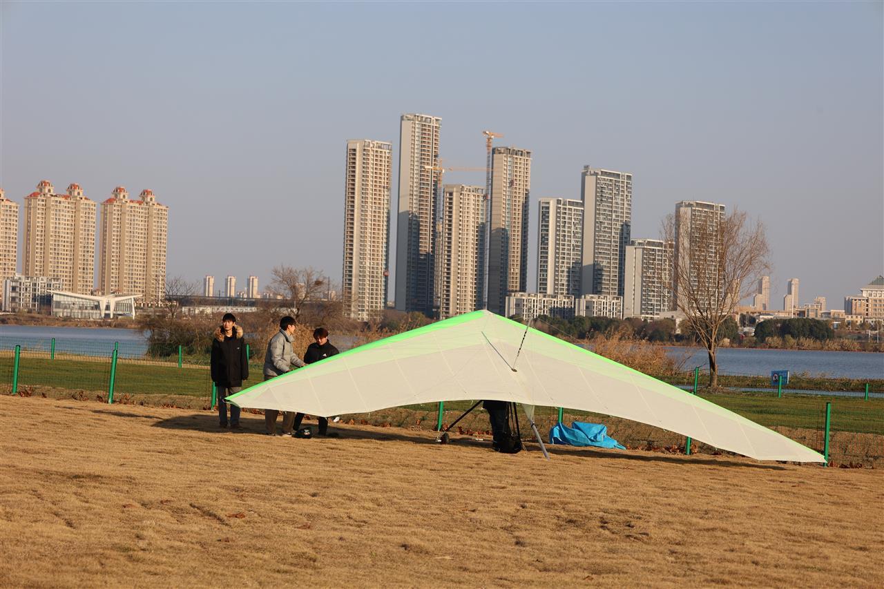 来到营地探访时,恰逢工作人员正在场地内进行轻型固定翼运动飞机测试。吸引得不少周边散步的市民驻足围观,大家纷纷拿出手机拍照记录,现场不时传来阵阵惊叹声。“没想到在家门口就能看到这么酷炫的飞行器测试,太惊喜了!”家住附近的市民王女士笑着说道。