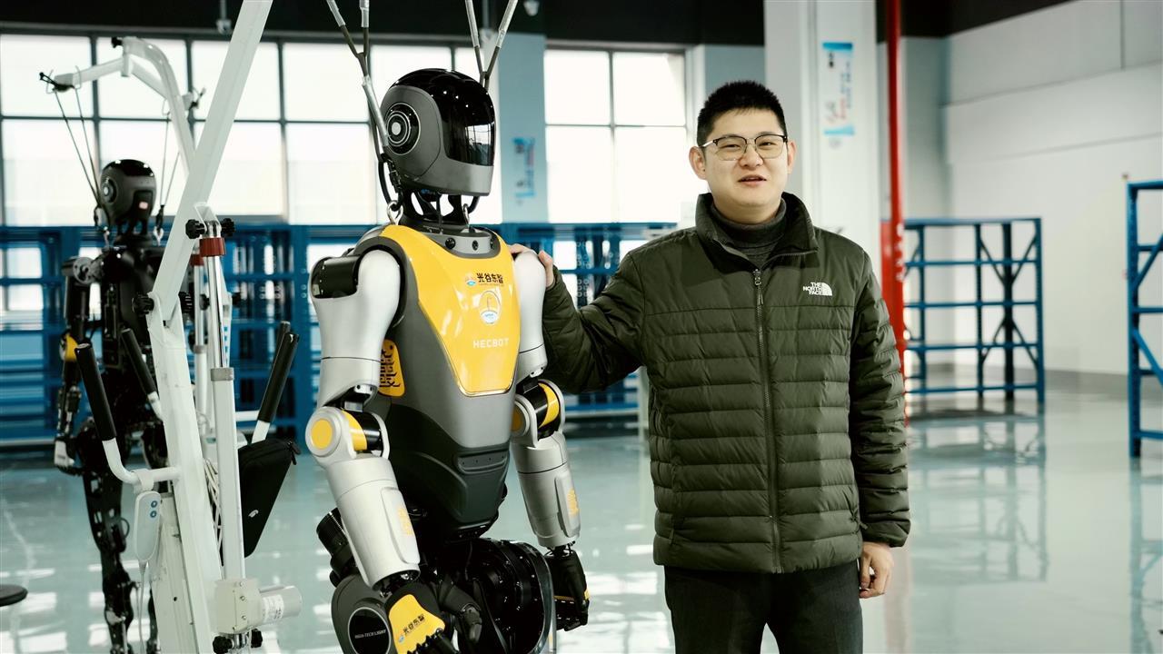 幕后,一支年轻的技术团队正注视着这场现代科技与传统文化的跨界对话。牵头人是楼凯齐,光谷东智具身智能技术有限公司(以下简称:光谷东智)的副总经理,他带领团队让“光子”人形机器人走出实验室、走下量产线,走进多个实际应用场景,这个过程只花了不到一年时间。