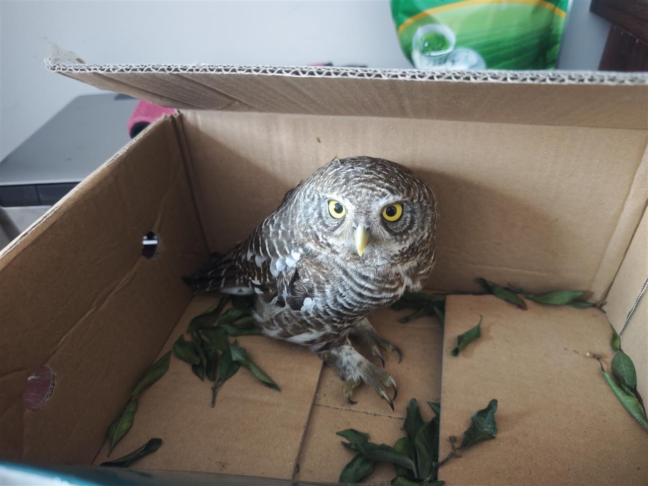 “看这小身板,肯定是学飞迷路了!”陈楚雄一眼就看穿了小家伙的窘境。他生怕贸然放生会让幼崽遭遇更大的危险,当即决定“收留”它一晚。陈楚雄将自家的猫笼子当作小猫头鹰临时的“家”,并守在一旁观察到深夜,确认小家伙状态稳定后才放心休息。
