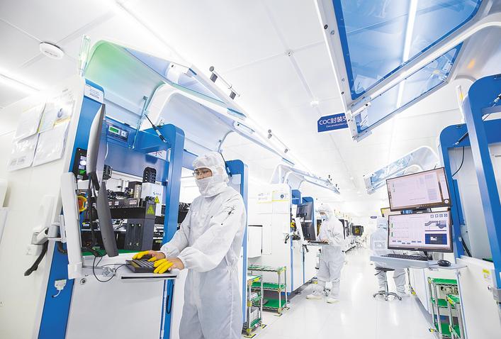 光迅科技高端光电子器件产业基地,技术人员加紧生产高速光模块。(湖北日报全媒记者 薛婷 摄)