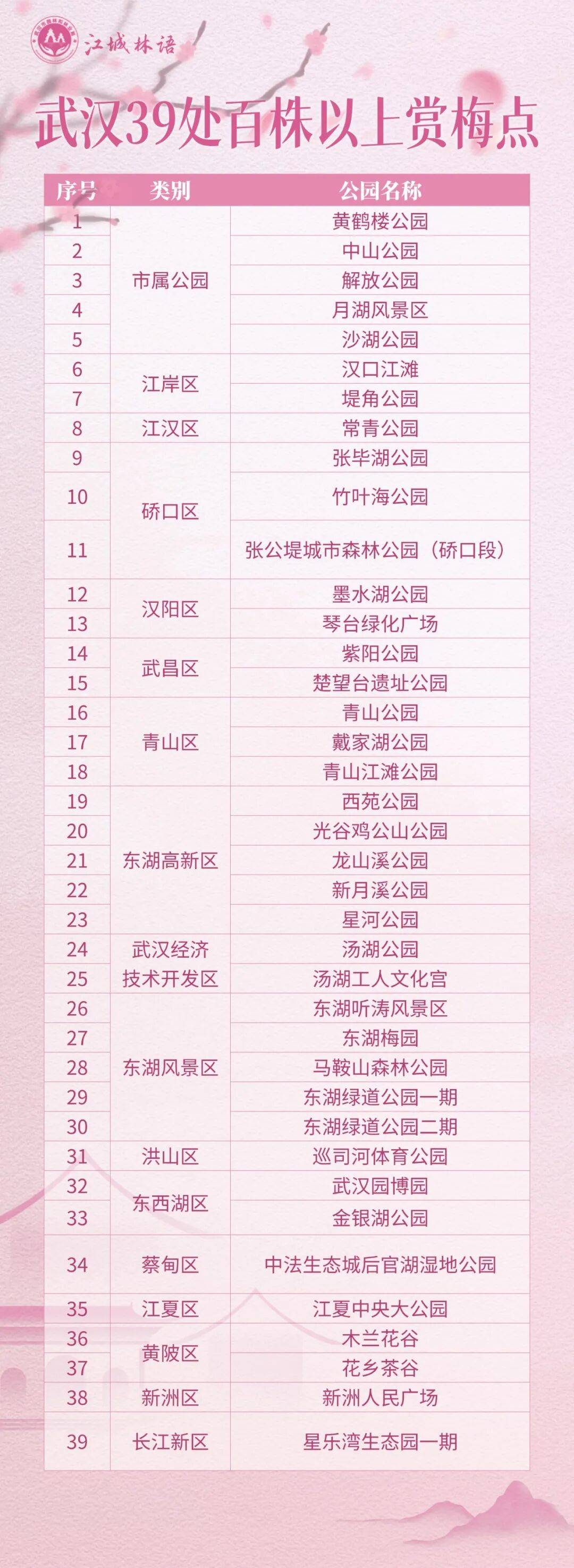 “春赏樱、夏观荷、秋品桂、冬观梅”,四季“花旦”在武汉轮番登场。随着“湿地花城”建设的推进,市民身边的赏梅地图仍在不断拓展更新。